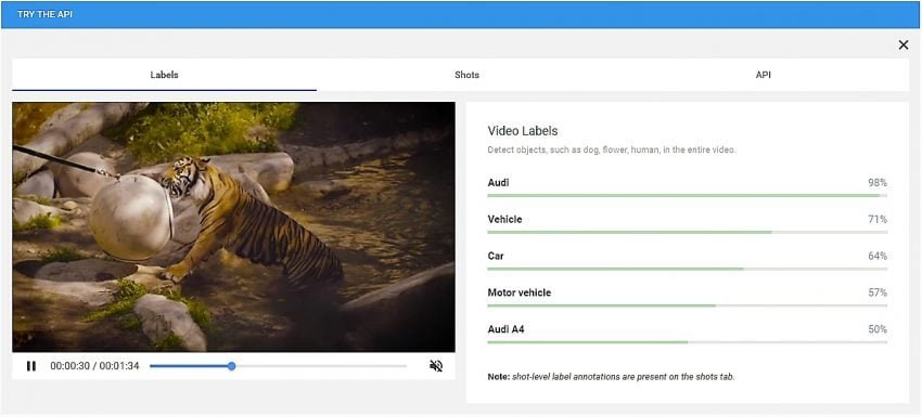 Żeby udowodnić swoją tezę, naukowcy edytowali wideo przedstawiające bawiącego się tygrysa. Wcześniej „przepuścili” je przez wspomniane zaawansowane narzędzie Google. Pierwsza próba potwierdziła przydatność Cloud Video Intelligence – algorytm oznaczył film tagami „zwierzę”, „przyroda”, „zoo”, „natura” i „turystyka”, co rzeczywiście odpowiadało temu, co znajdowało się na filmie. Następnie, co 50 klatek wstawili pojedyncze zdjęcie samochodu Audi.
