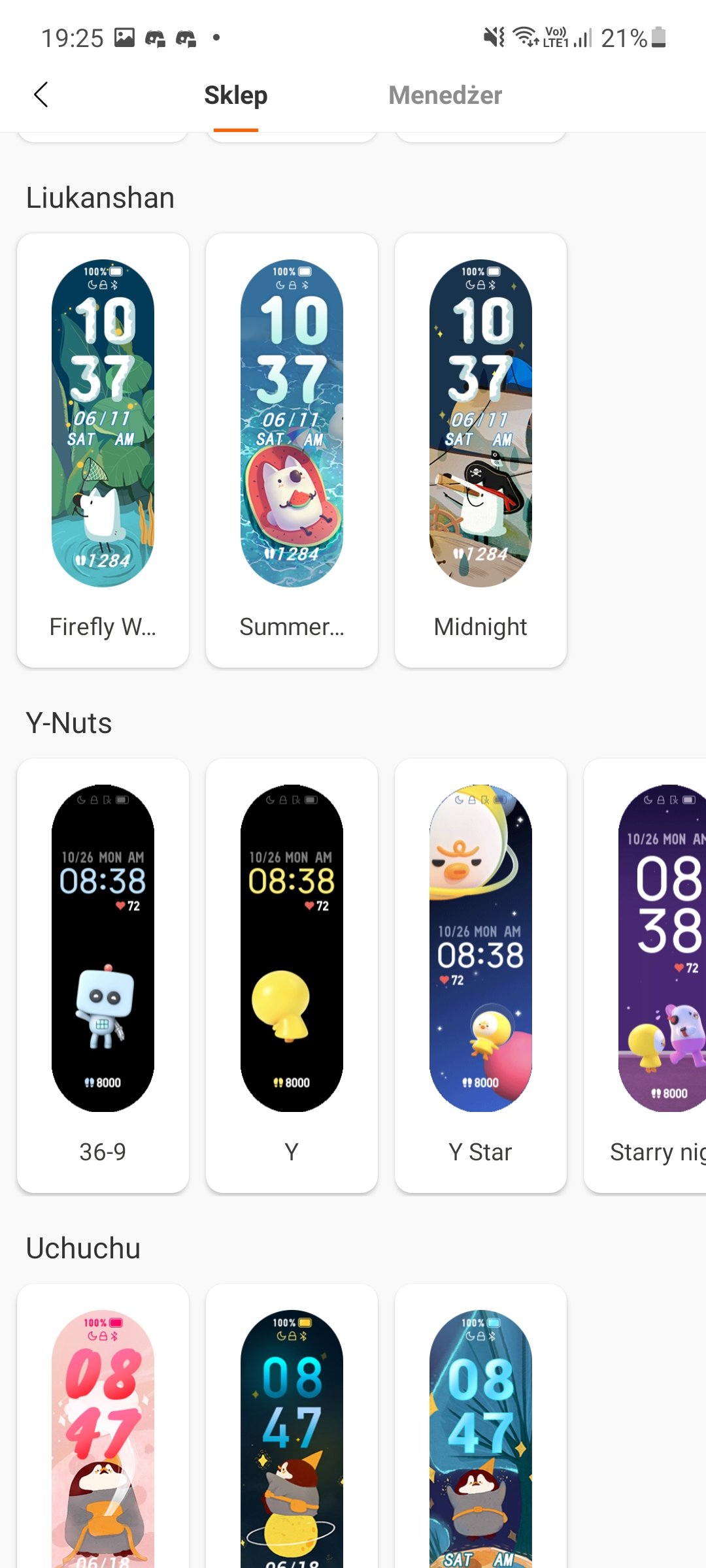 - sklep, czyli miejsce ze wszystkimi dostępnymi tarczami zegara. Część z nich można dostosować, w niektórych można ustawić tło. Kilka jest animowanych, reszta raczej statyczna. Ogólnie tych tarcz jest łącznie 85 (stan na 23 lipca 2021),