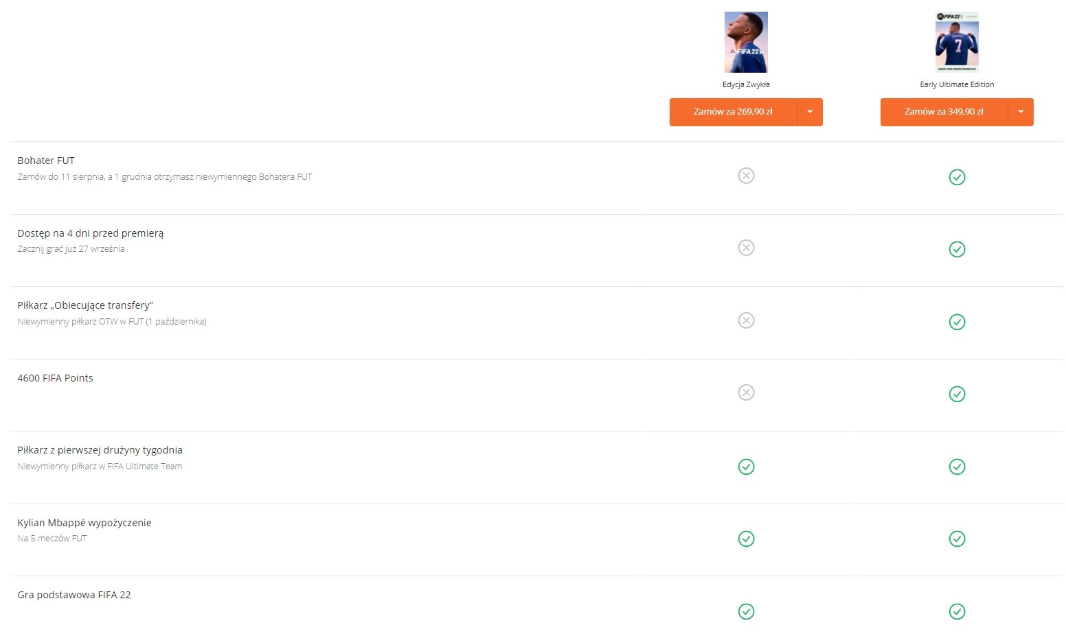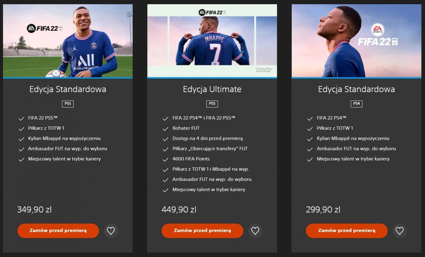 A co z konsolami stacjonarnymi? Na konsolach poprzedniej generacji, tj. PS4 i Xbox One, FIFA 22 będzie kosztowała 239,90 złotych, natomiast na PS5 i Xbox Series X|S – 279,90 złotych. Mowa tu o wersjach pudełkowych.
