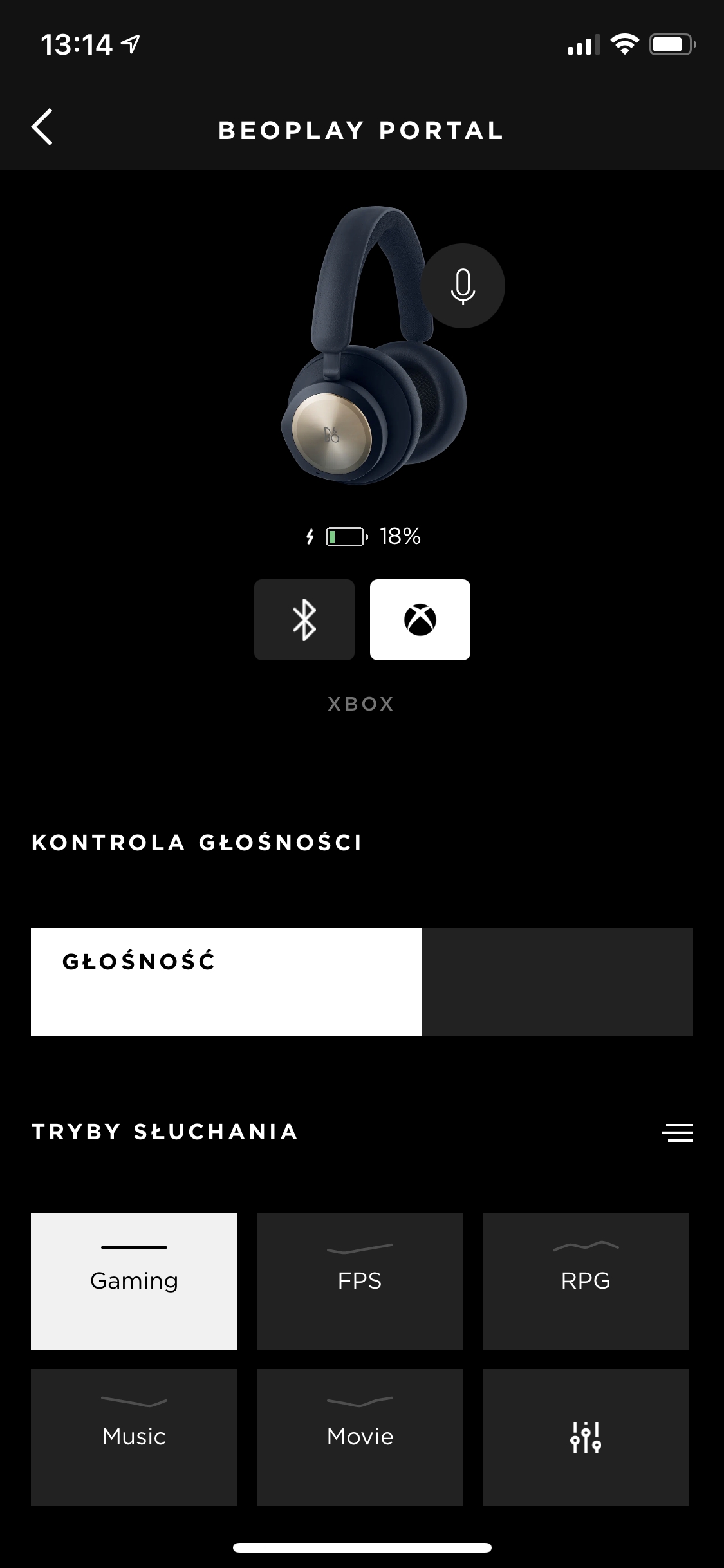 Niezależnie od sposobu połączenia, należy sparować słuchawki ze smartfonem. Dzięki aplikacji Bang & Olufsen można zmienić ustawienia wbudowanego korektora, ANC, a w trybie gry można także dostosować balans dźwięku z czatu głosowego i gry – w momencie, gdy rozpoczynałem testowanie słuchawek, można było ustawić w aplikacji, która z funkcji (ANC czy balans) działa na lewym pasku, lecz, gdy to piszę, przełącznika nigdzie nie mogę znaleźć – nie wiem, czy to kwestia błędu, czy zamierzona zmiana.