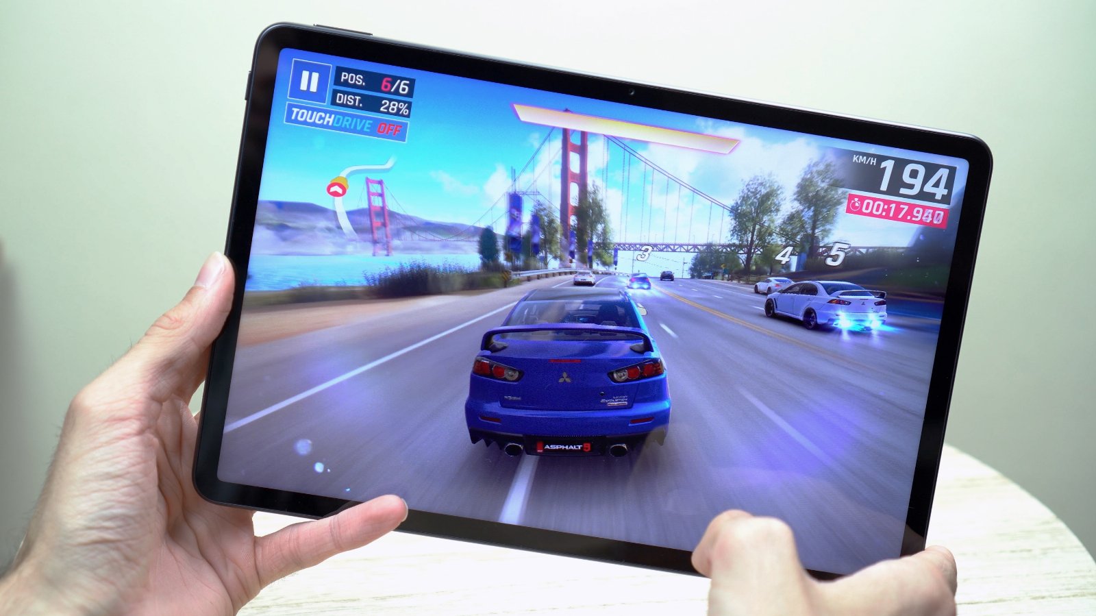 Jeśli chodzi o gry, da się znaleźć kilka popularnych tytułów, między innymi Asphalt 9, Cut The Rope 2 czy Angry Birds. Gry działają bez żadnego zarzutu, dodatkowo wymienione przeze mnie tytuły działają w 120 Hz, przez co sprawiają wrażenie płynniejszych. Podczas rozgrywki nie zdarzyły mi się żadne zacięcia. Kształt tabletu jest odpowiedni, aby wygodnie trzymać go w rękach podczas grania.