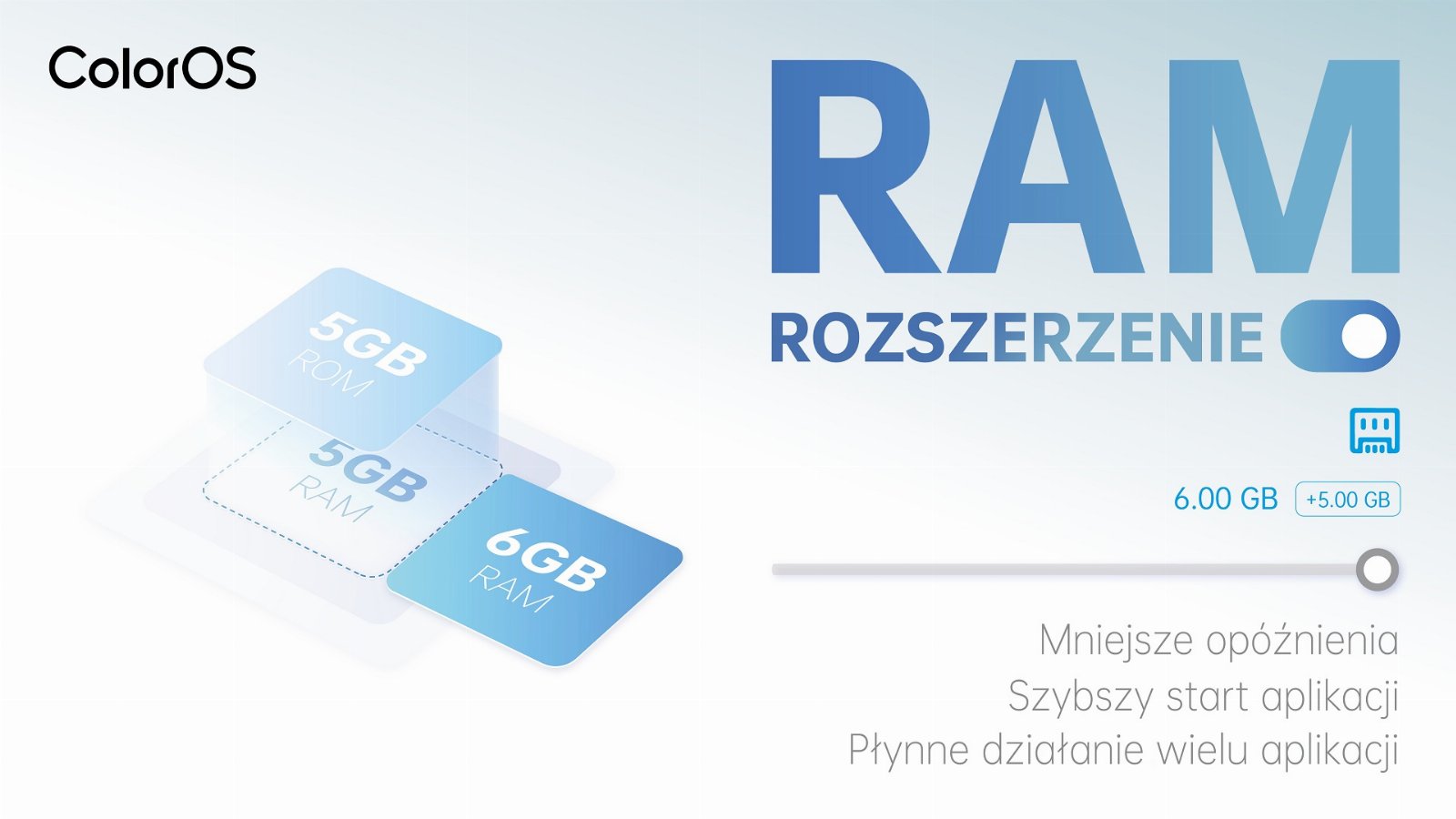 Producent poinformował, że wraz z najnowszą aktualizacją systemu ColorOS 11 do użytkowników trafia funkcja rozszerzenia pamięci RAM w smartfonach. Została ona stworzona z myślą o sytuacjach, gdy zapotrzebowanie na RAM jest ponadprzeciętnie wysokie, a urządzenie fizycznie nie dysponuje wystarczającymi zasobami.