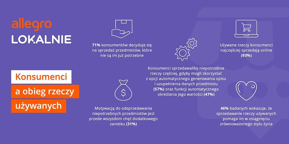 Jako główne motywacje wymieniane są: chęć dodatkowego zarobku, potrzeba zyskania przestrzeni w swoich domach, zamiar wykorzystania zarobionych środków na zakup innych potrzebnych przedmiotów oraz pragnienie, aby niepotrzebne już przedmioty zyskały drugie życie, zgodnie z ideą wspierania przyjaznego środowisku obiegu rzeczy używanych. Aż 93% osób wybiera sprzedaż online jako preferowany sposób pozbycia się swoich niepotrzebnych rzeczy, a prawie 57% respondentów korzysta w tym celu z platformy Allegro Lokalnie. Eliza Goździewicz, Allegro Lokalnie Business Unit Manager