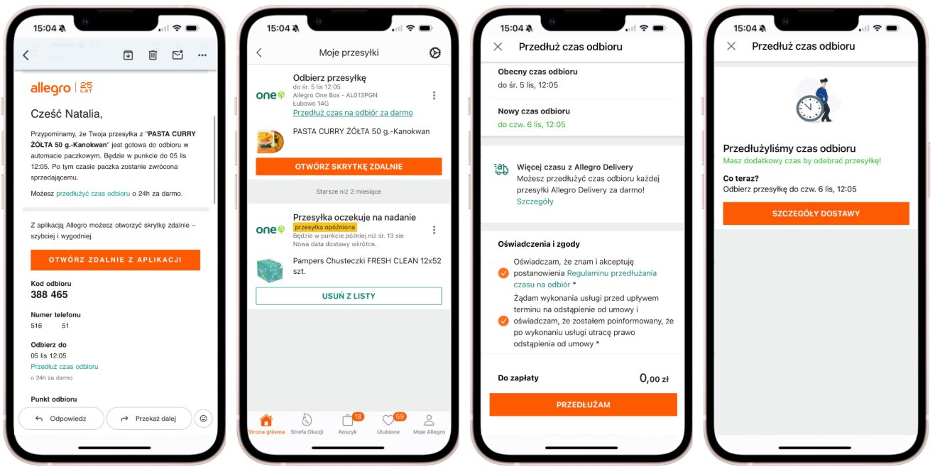 Do tej pory nie istniała możliwość przedłużenia czasu na odbiór przesyłki, choć takie prośby pojawiały się od dawna. Od teraz jest to jednak możliwe – kupujący mogą bezpłatnie przedłużyć czas na odbiór zamówienia o 24 godziny. Można to zrobić za darmo za pośrednictwem aplikacji.