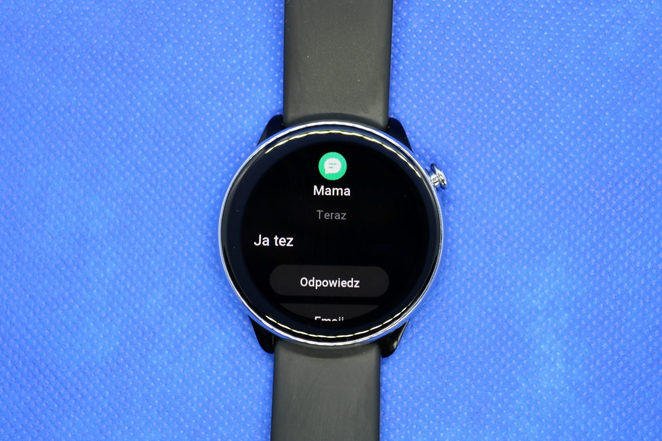 Jeśli chodzi o połączenia, nie jest już tak kolorowo. Z oczywistych przyczyn technicznych nie ma możliwości odebrania połączenia za pomocą zegarka i, mimo wszystko, musimy sięgnąć po nasz smartfon. Połączenie można jednak z poziomu GTR Mini odrzucić i odpowiedzieć na nie krótką wiadomością SMS.
