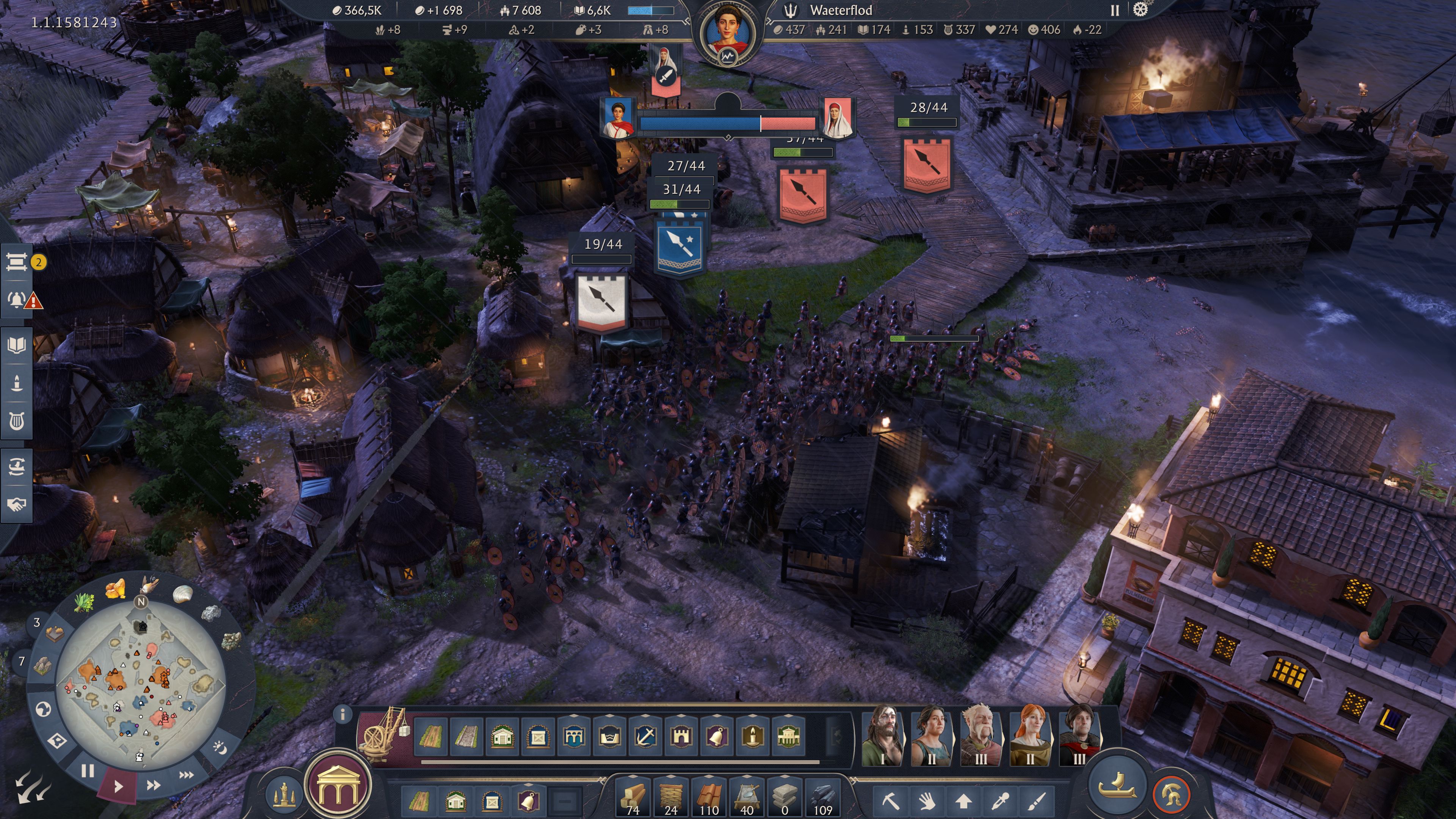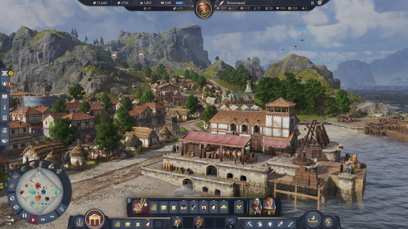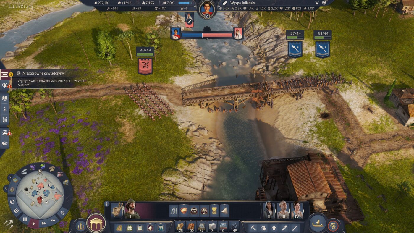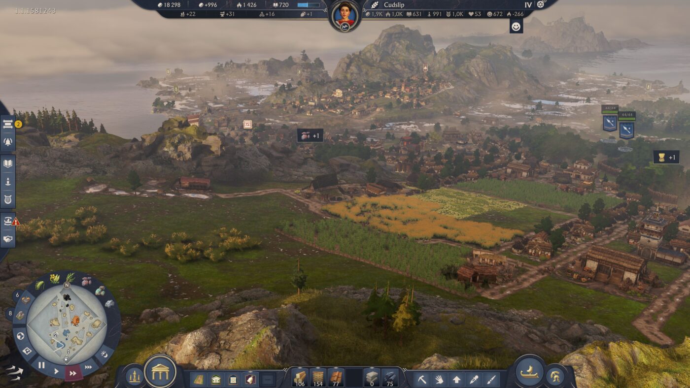 Nowe wskaźniki, rozwinięcie dyplomacji, wojna na lądzie, akwedukty, dwie ścieżki osadników w Albionie – wszystkie te aspekty wymagają często stałej uwagi, przez co już po kilku godzinach lista rzeczy do regularnego odfajkowywania może przytłoczyć. Nie pomaga w tym interfejs, który pomimo przejrzystości zasypuje gracza informacjami, które miło by było schować w dowolnym momencie. Zamiast tego na późniejszym etapie bazowy podgląd na naszą pracę to przyglądanie się ponad 20 parametrom – liczę w tym przypadku materiały budowlane, wskaźniki ogólne oraz te związane z miastem, nad którym akurat wisi kamera.