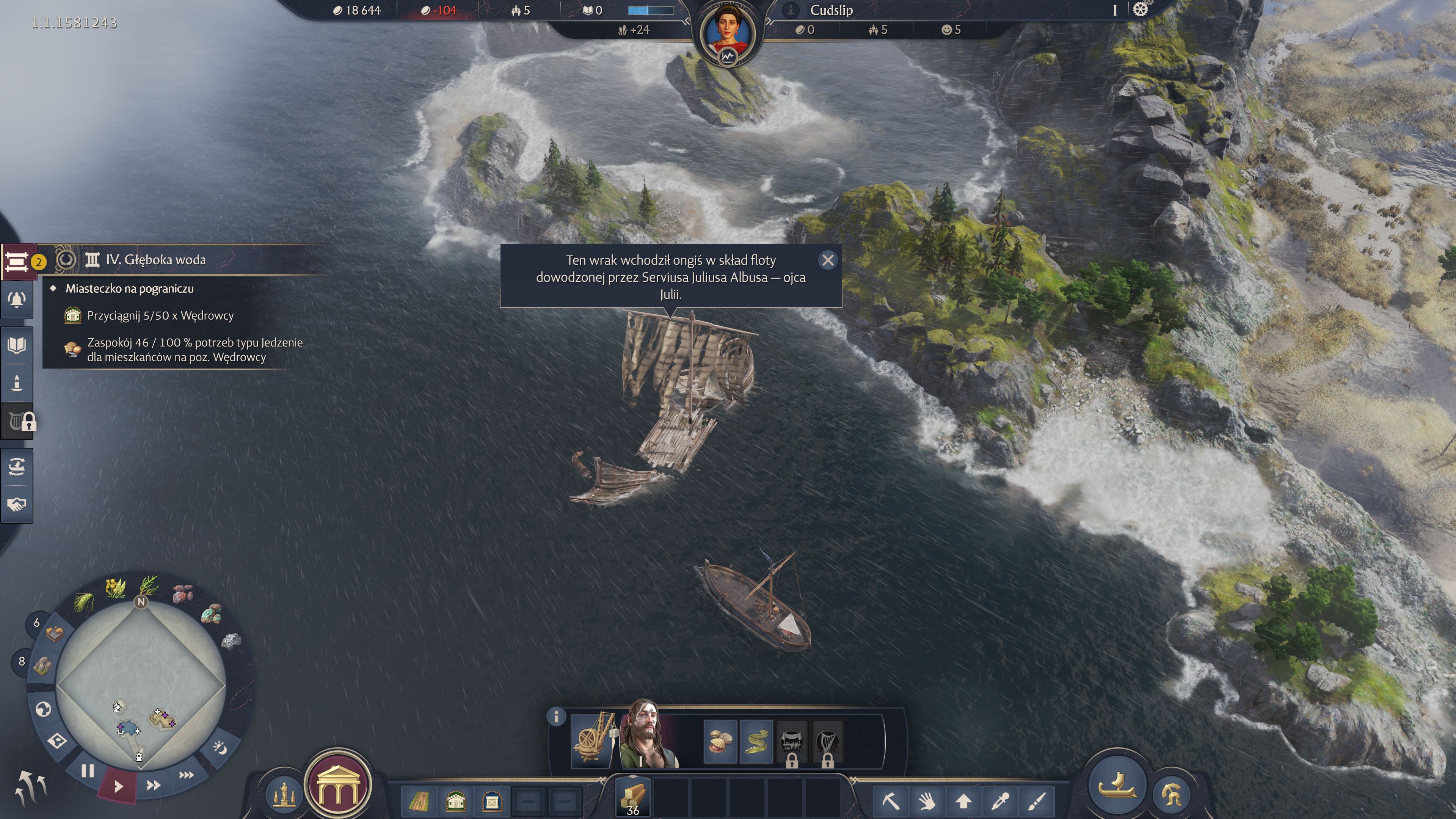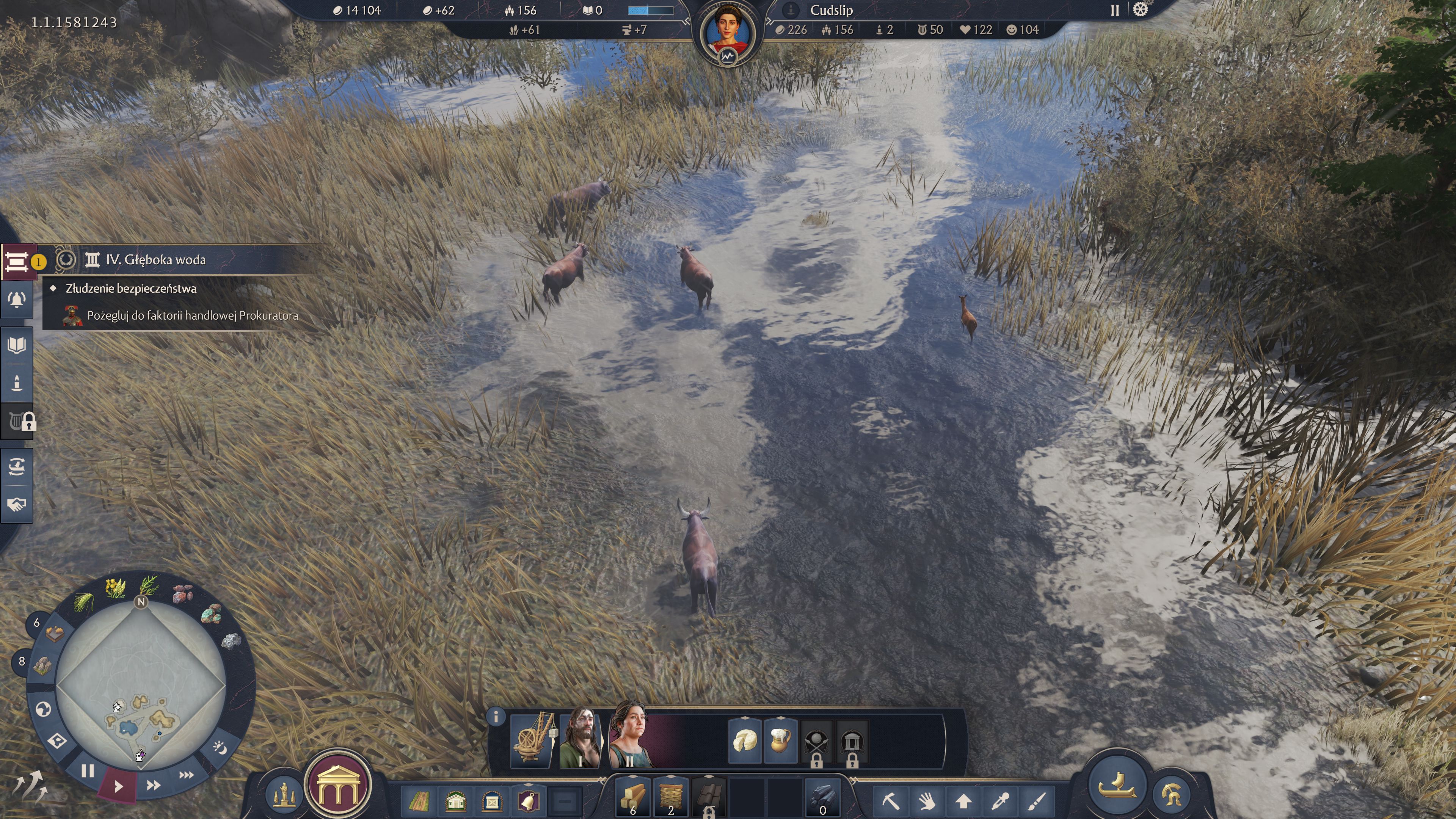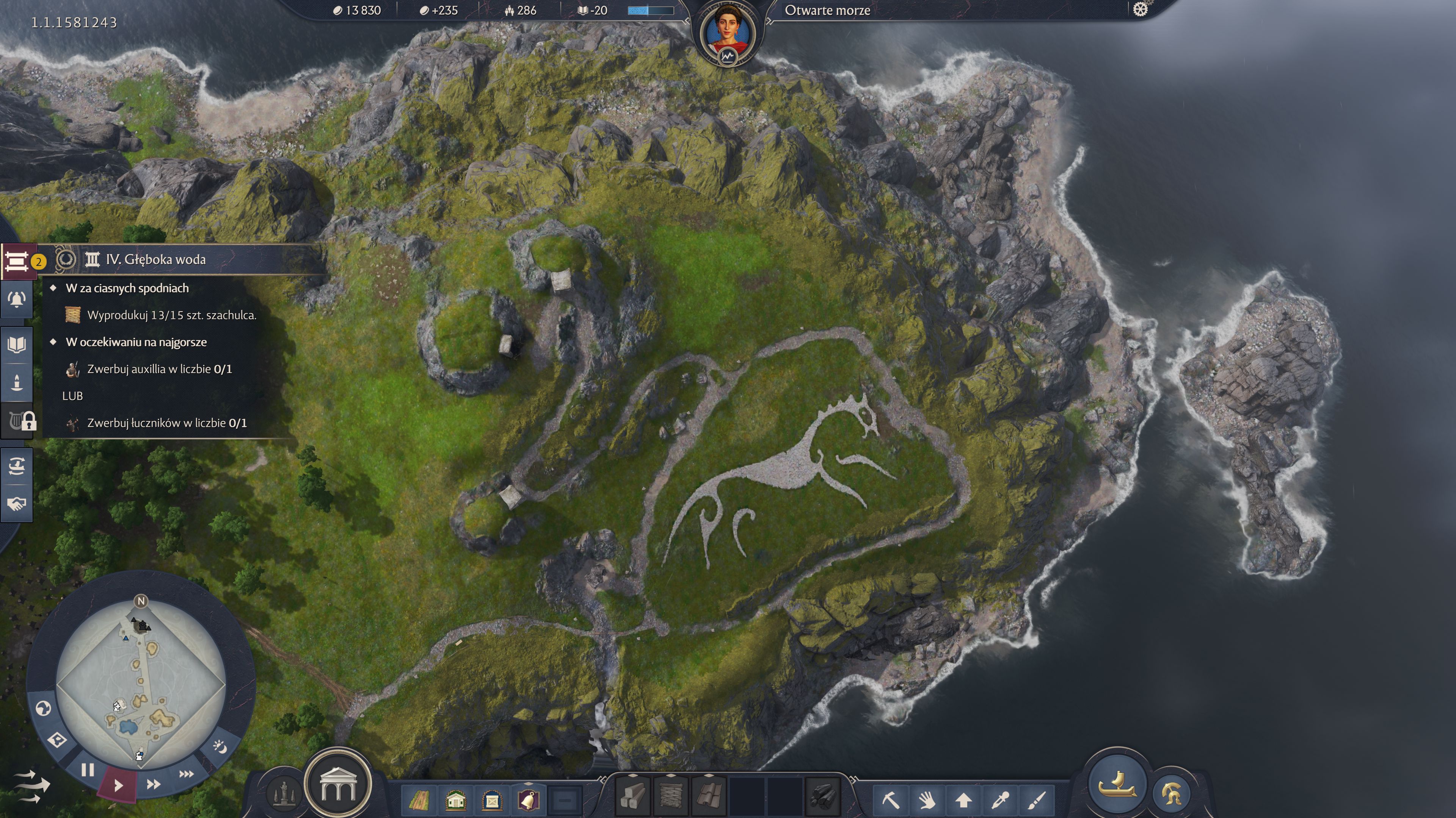 Nowe wskaźniki, rozwinięcie dyplomacji, wojna na lądzie, akwedukty, dwie ścieżki osadników w Albionie – wszystkie te aspekty wymagają często stałej uwagi, przez co już po kilku godzinach lista rzeczy do regularnego odfajkowywania może przytłoczyć. Nie pomaga w tym interfejs, który pomimo przejrzystości zasypuje gracza informacjami, które miło by było schować w dowolnym momencie. Zamiast tego na późniejszym etapie bazowy podgląd na naszą pracę to przyglądanie się ponad 20 parametrom – liczę w tym przypadku materiały budowlane, wskaźniki ogólne oraz te związane z miastem, nad którym akurat wisi kamera.