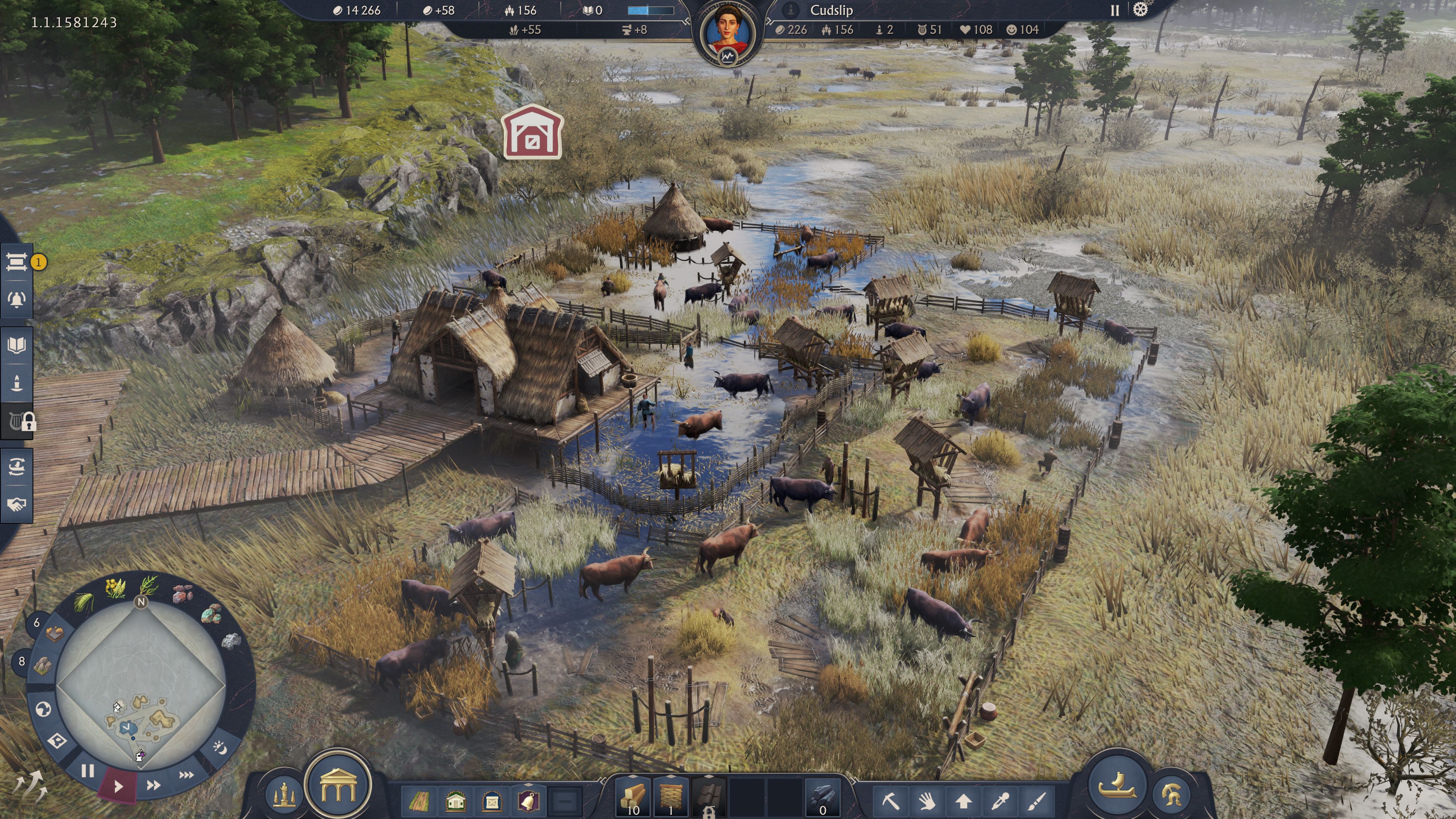 Czy Albiończycy mają w grze swój ekwiwalent akweduktów? Poniekąd – wyspy na drugiej mapie oferują bowiem specjalny biom w postaci mokradeł służących np. do zbierania gliny na dachówkę czy do połowu węgorzy. Rozwijając odpowiednie drzewko technologiczne możemy się jednak nauczyć osuszania terenu. Od punktu startowego ciągniemy wtedy kanały, które możemy rozgałęziać podobnie jak rzymski ekwiwalent. W tym przypadku ukształtowanie terenu jest jednolite, a jedyne ograniczenie to łączna długość systemu podpiętego do jednego ujścia.