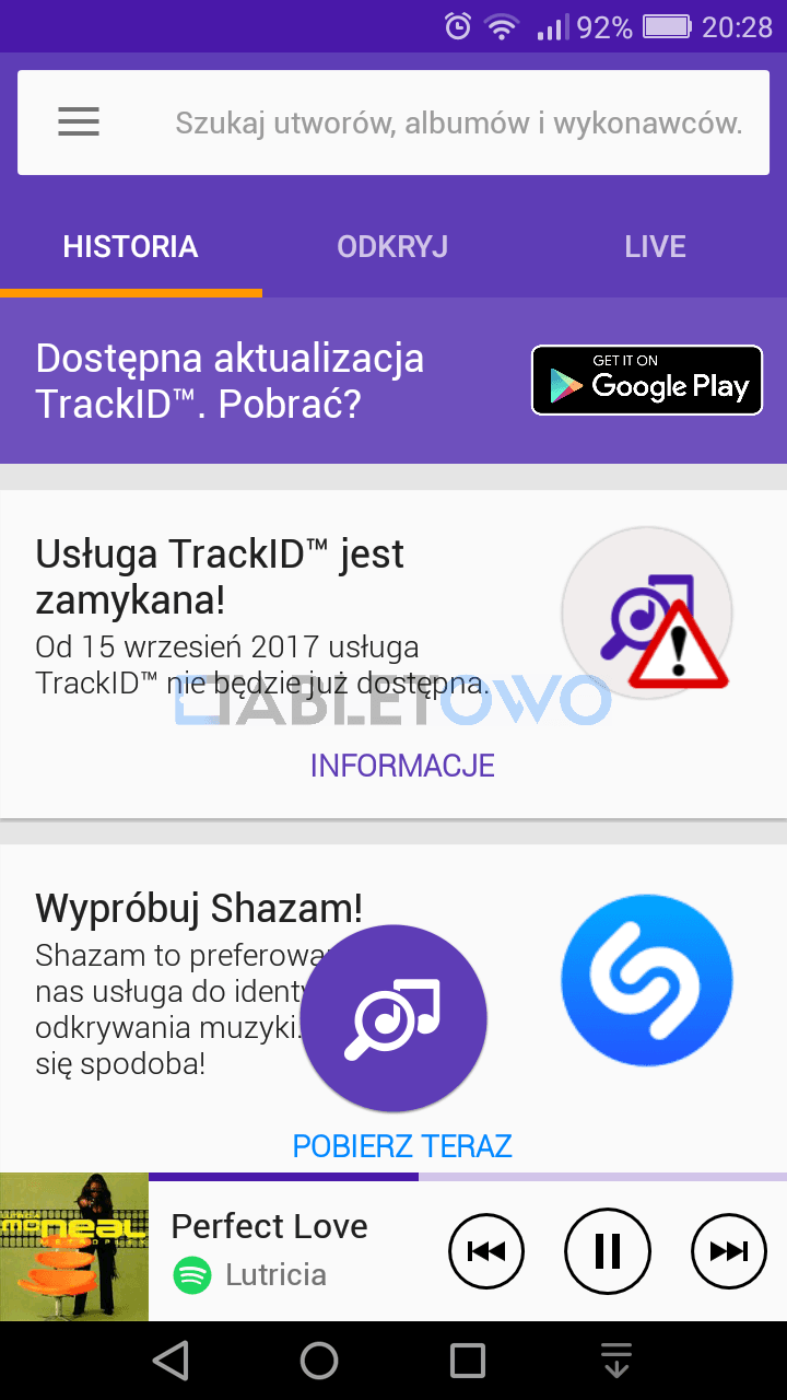 W Sklepie Play znajdziemy mnóstwo programów, umożliwiających rozpoznawanie muzyki, w tym m.in. Shazam, SoundHound oraz TrackID. Pierwszy z nich cieszy się największą popularnością, choć wielu użytkowników skarży się na dosyć wolne działanie. Drugi także ma bardzo dobre opinie. A trzeci? Trzeci wkrótce przestanie istnieć.
