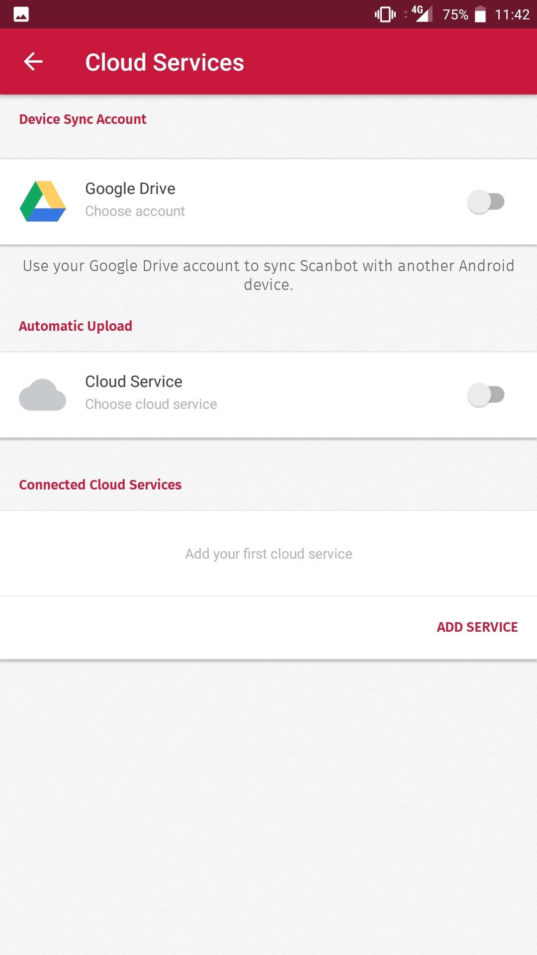 - Cloud Services – ustawienie automatycznej synchronizacji między innymi urządzeniami z systemem Android za pomocą dostępu do Google Drive oraz ustawienie automatycznego uploadu do wybranej chmury