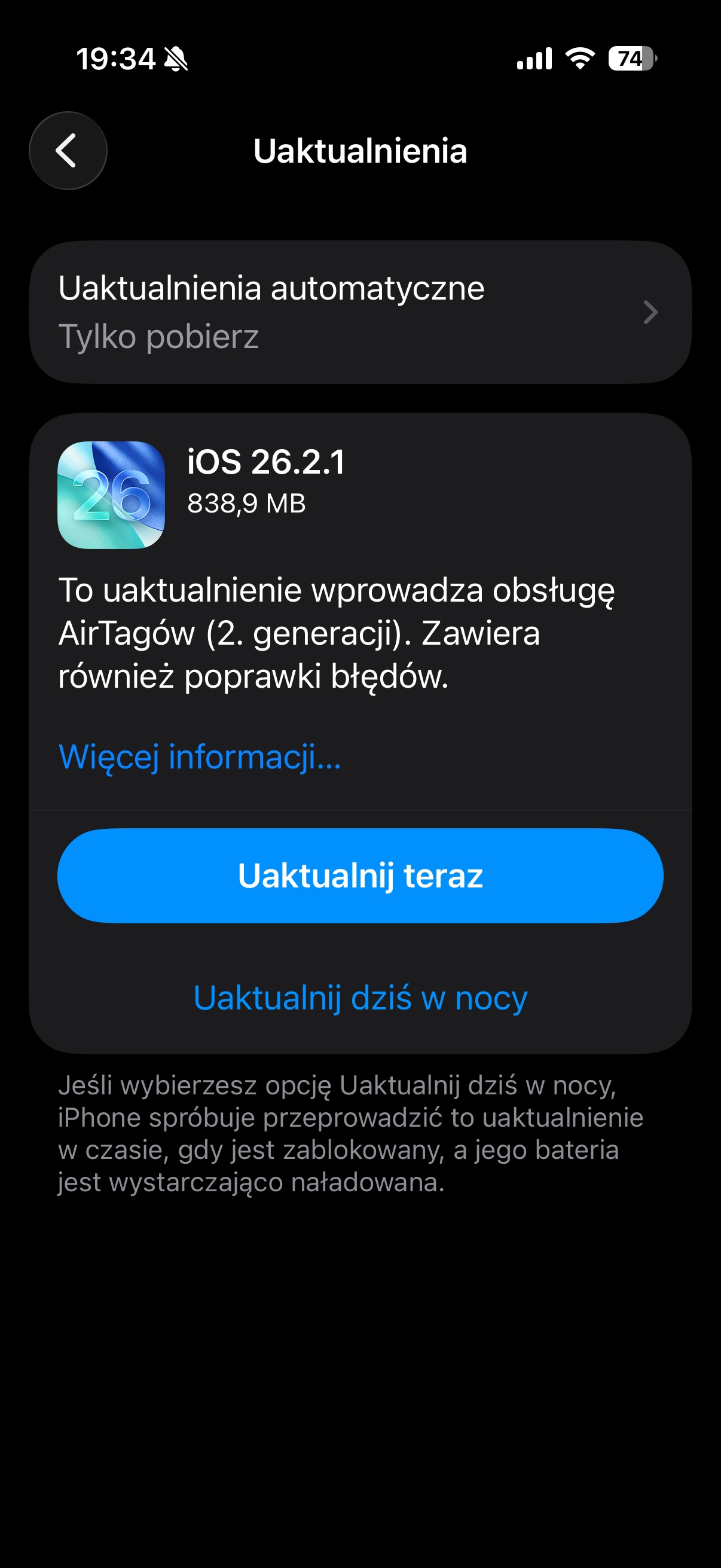 Aktualizacja do iOS 26.2.1 (screen: Grzegorz Dąbek | Tabletowo.pl)