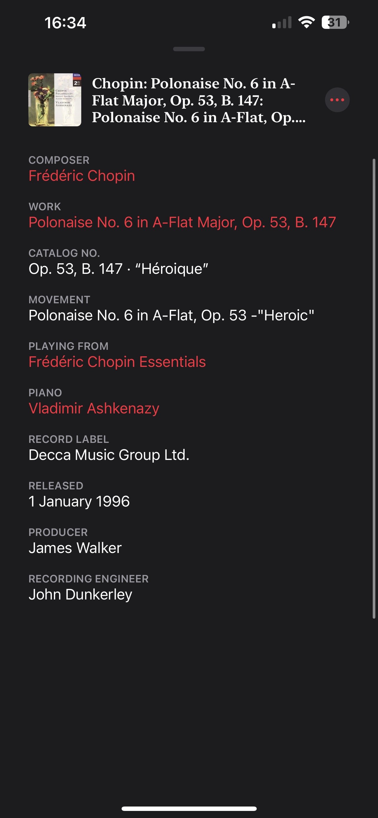 Dodam jeszcze, że samo okno odtwarzania wygląda nieco inaczej niż w Apple Music. Tytuł utworu jest wyświetlany wyraźnie mniejszymi literami tak, aby mógł zostać pokazany w całości. Niżej wyświetla się oznaczenie jakości dźwięku (o której za chwilę), natomiast na samym dole z lewej strony znalazł się przycisk, który pozwala nam wyświetlić szczegółowe informacje, między innymi o dacie wydania, nazwiska producenta i osoby odpowiadającej za nagranie i wiele innych.