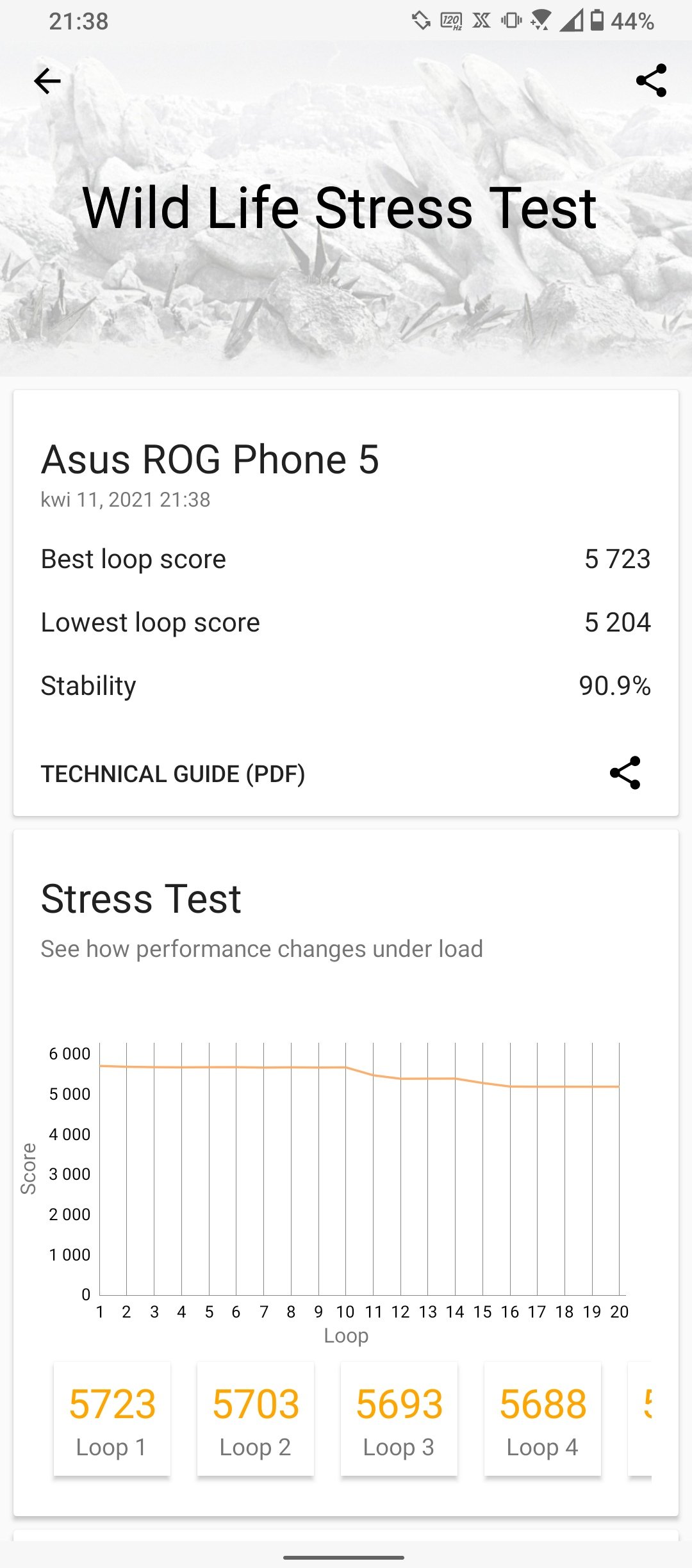 - 3DMark Wild Life Stress Test: 5204-5723 punkty; stabilność 90,9%.