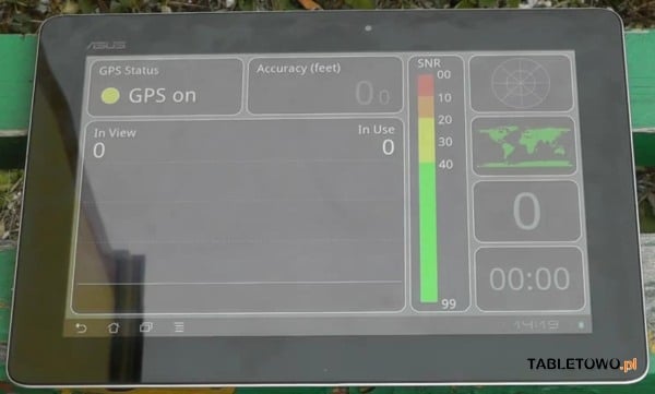 Wielu Czytelników Tabletowo.pl zgłaszało chęć używania Transformer Prime jako nawigacji samochodowej. Niestety, w obecnej chwili nie jest to możliwe, bowiem nie pozwala na to brak wykrywania przez GPS satelitów, co zobaczycie na poniższym filmiku. A że urządzenie to nie posiada 3G, nie można go wspomóc połączeniem z siecią, co na pewno poprawiłoby sytuację.