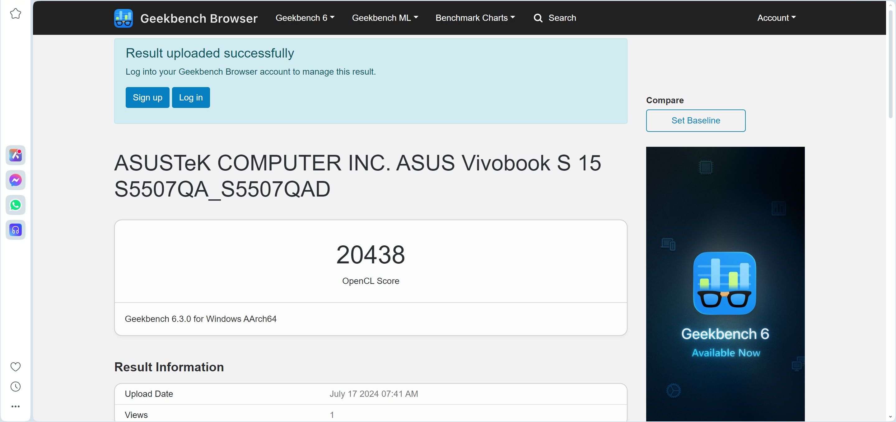 | Asus Vivobook S 15 S5507QA Snapdragon X Elite | 2354 | 14531 |