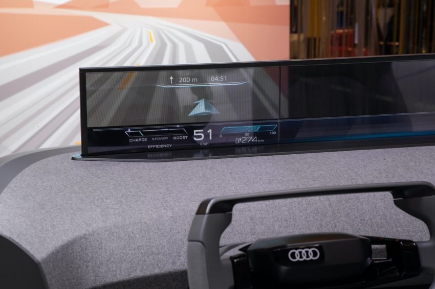 Audi w Las Vegas pochwaliło się jeszcze ekranem, który w wybranych fragmentach może stać się przezroczysty, aby zapewnić podgląd drogi. Ma on 15 cm wysokości, 122 cm szerokości i jest częściowo wbudowany w deskę rozdzielczą. Ekran składa się z dwóch warstw – przezroczystego wyświetlacza OLED i czarnej warstwy, dającej efekt głębokiego odcienia czerni. Może on posłużyć do wyświetlania najważniejszych danych o jeździe, a także interfejsu całego oprogramowania.