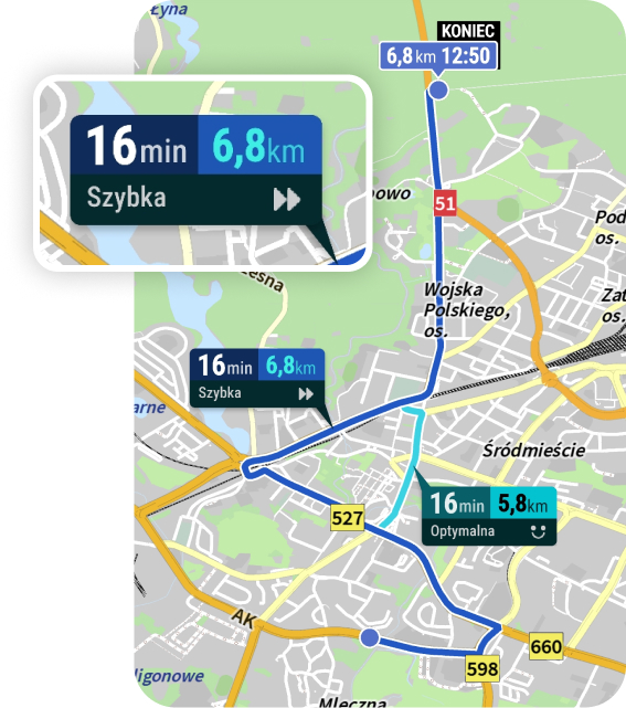 Etykiety punktów Via i Koniec zostały uporządkowane. Przy większym przybliżeniu mapy użytkownik zobaczy numer posesji dla danego punktu – Via lub Końca trasy. W założeniach ta zmiana ma ułatwić orientację w terenie i zapewnić sprawniejsze zlokalizowanie dokładnego miejsca docelowego lub przystanku pośredniego.