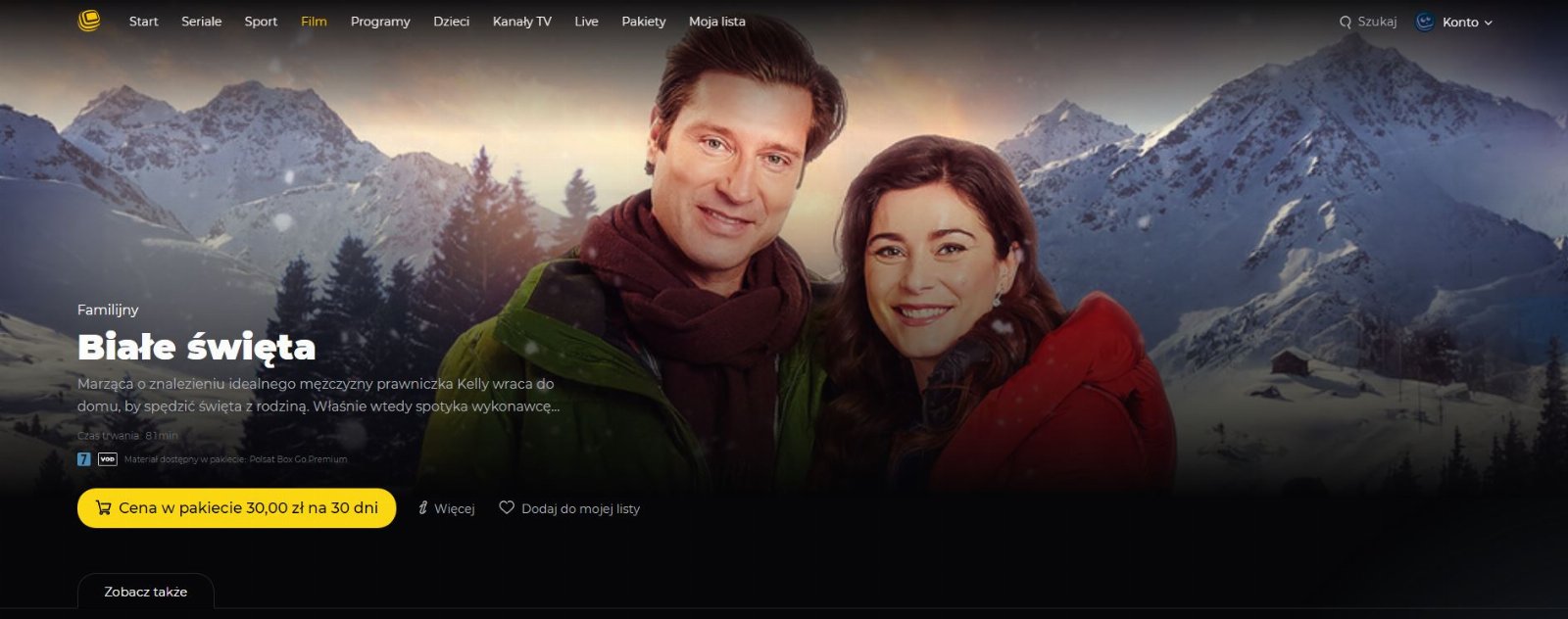 Wiedząc doskonale, ile filmów nada telewizja w ciągu świątecznych dni, nie ma idealnego sposobu na obejrzenie wszystkiego. Polsat Box Go wychodzi naprzeciw oczekiwaniom klientów, oferując zaskakujący pakiet kanadyjskich produkcji świątecznych dla całej rodziny. Filmy możemy obejrzeć, inwestując w pakiet Polsat Box Go Premium.