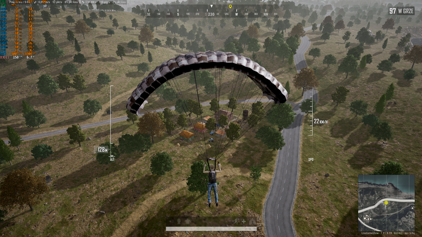 Przypominam, że i5 generowało około 135 FPS-ów, widać PUBG uwielbia procesory 10-rdzeniowe, bo tutaj mówimy o od 170 do 200 FPS – jest moc! Temperatura ponownie w okolicy 50 stopni.