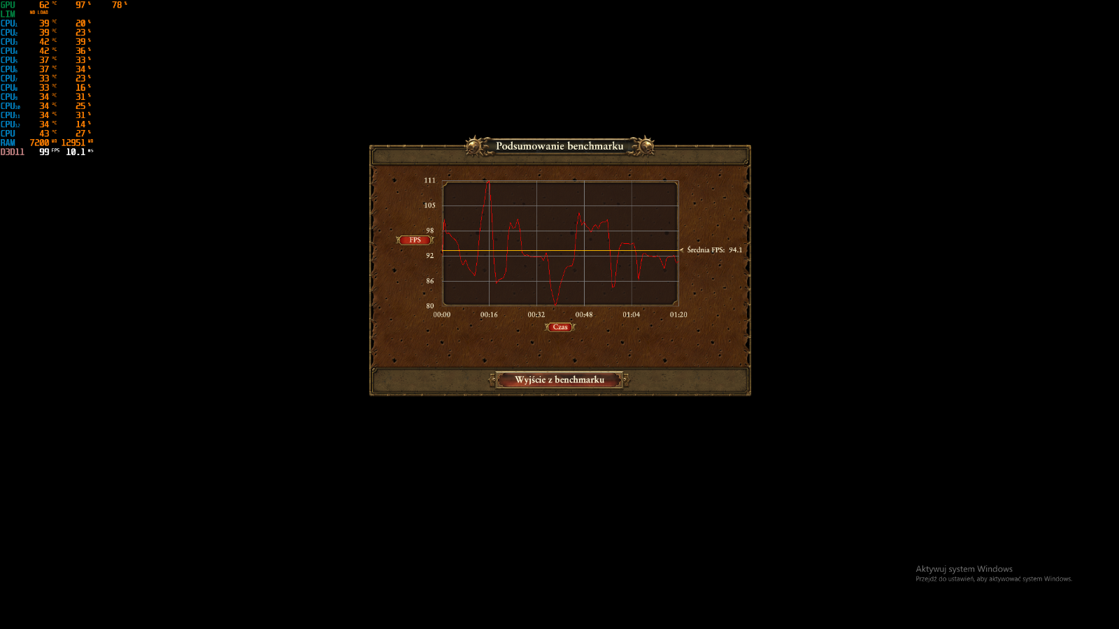 FPS od 90 do 100 przy temperaturze około 60 stopni – wynik super.