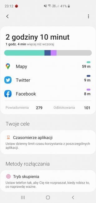 Z innych rzeczy: czytnik linii papilarnych w ekranie i rozpoznawanie twarzy – działają bez zastrzeżeń. Hybrydowy dual SIM – jak był na miejscu, tak jest dalej. Ładowanie zwrotne, choć mało efektywne, czasem się przydaje – zwłaszcza do ładowania akcesoriów (np. Galaxy Watcha Active2 czy słuchawek Galaxy Buds).