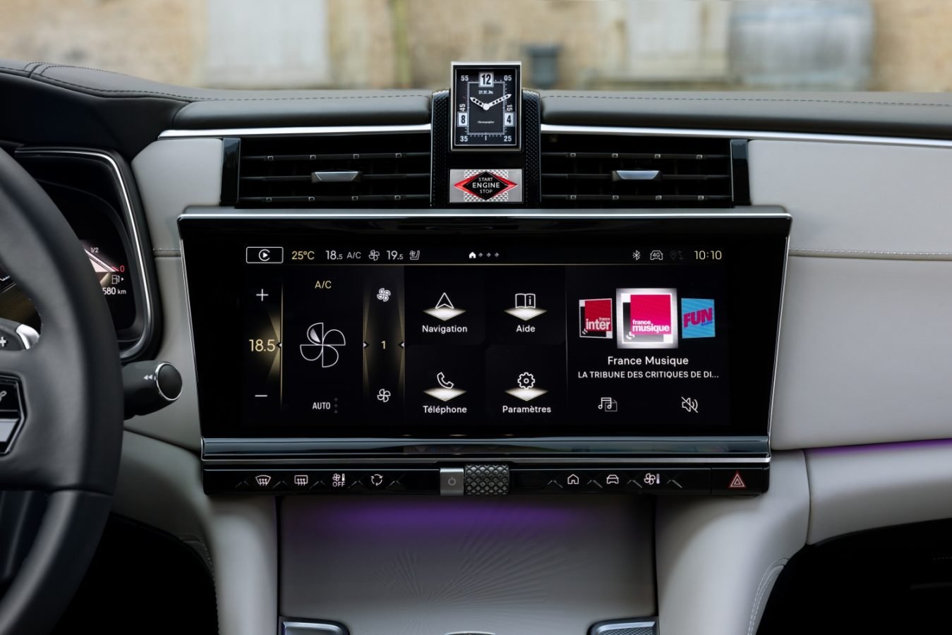 Owszem, mamy do czynienia z nowym oprogramowaniem, ale nie jest to zupełna nowość w samochodach koncernu Stellantis. System infotainment w DS 9 sporo czerpie bowiem z tego, co znajdziemy w nowym Peugeocie 408 czy nawet Jeepie Avenger. Całość jest zaprojektowana w bardzo podobny sposób, a więc mamy wspomniany już ekran z kafelkami, niemal identyczny układ menu, a także dobrze znaną nawigację. W DS 9 zastosowano jednak inny, zaprojektowany specjalnie dla tej marki interfejs, który całkiem nieźle łączy wizualną efektowność z intuicyjnym i czytelnym rozmieszczeniem większości elementów.
