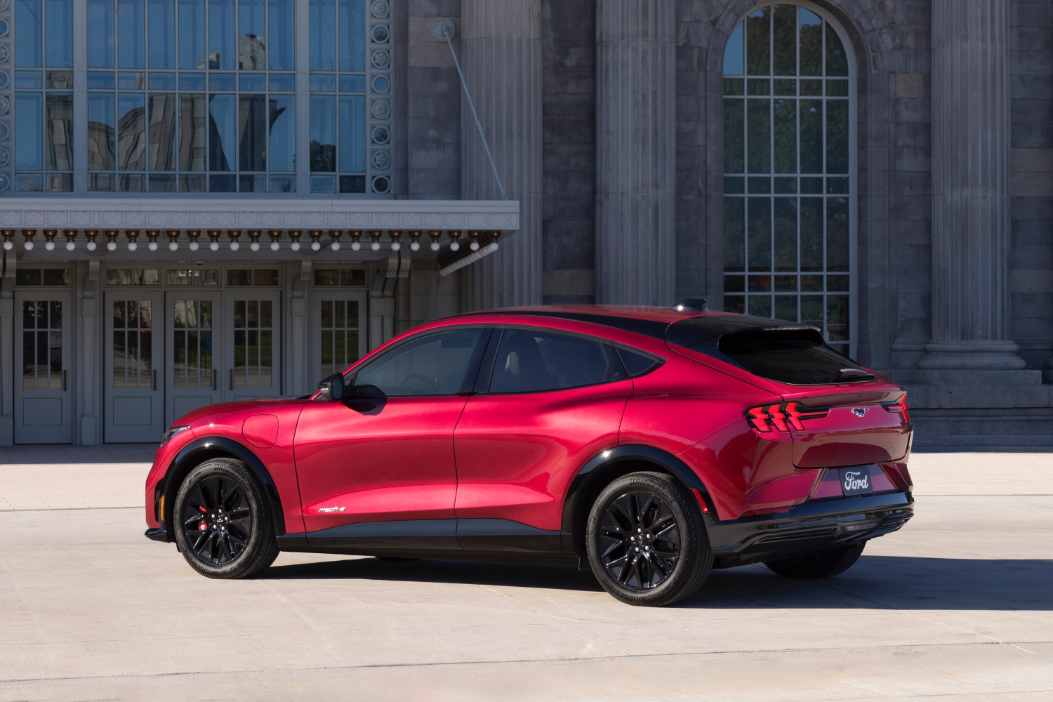 Przygotowany został jeszcze nowy pakiet Sport Appearance, który zapewnia kluczowe elementy stylistyczne z Mustanga Mach-E GT w niższej cenie. Otrzymujemy atrapę chłodnicy pomalowaną na czarno, a także zaciski hamulcowe w kolorze czerwonym z dobrze widocznym logo Brembo. Do tego dochodzą 19-calowe monochromatyczne koła w kolorze czarnym o wysokim połysku oraz czarne listwy drzwi.