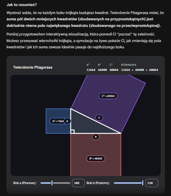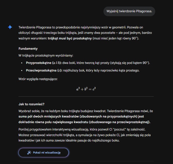 W moim przypadku opcje te są już dostępne. Udało mi się m.in. zgłębić temat dotyczący orbity Księżyca wokół Ziemi, a także równanie Clapeyrona czy twierdzenie Pitagorasa. To kolejna nowość, która udowadnia, że sztuczna inteligencja naprawdę może być przydatna, również podczas pracy czy nauki (o ile zechcemy tę technologię mądrze wykorzystać).