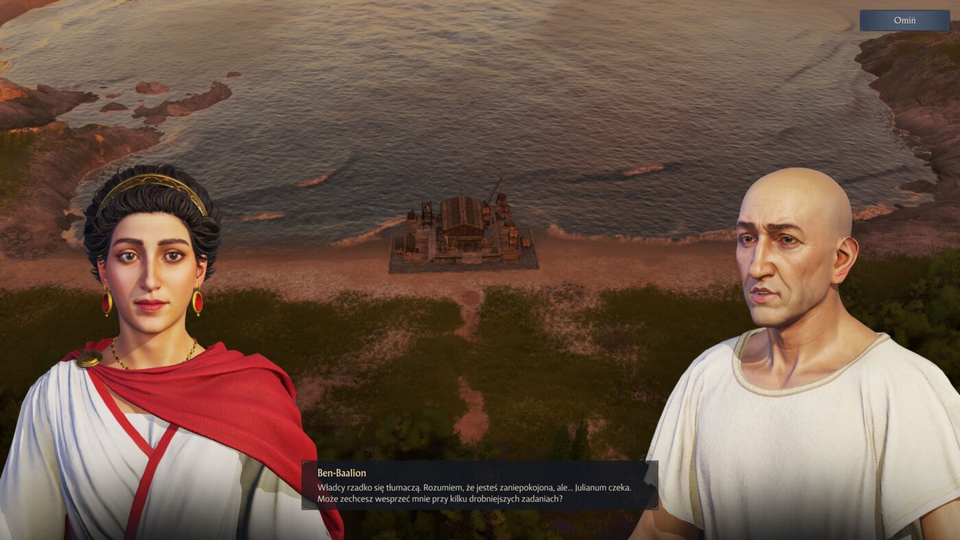 Jak to strategiczny zwyczaj nakazuje, jeżeli w grze nie występuje samouczek, to w ten sposób należy traktować kampanię dla pojedynczego gracza. W przypadku Anno 117: Pax Romana czekają na nas dwie ścieżki. Obie skupiają się na postaci świeżo upieczonego zarządcy – pierwszym z nich jest Markus, drugim natomiast Marcia. Choć w ramach wczesnego dostępu mogłem rozegrać kampanię do końca pierwszego aktu, co zajmuje kilka godzin, postanowiłem skupić się na rzymskiej bohaterce.