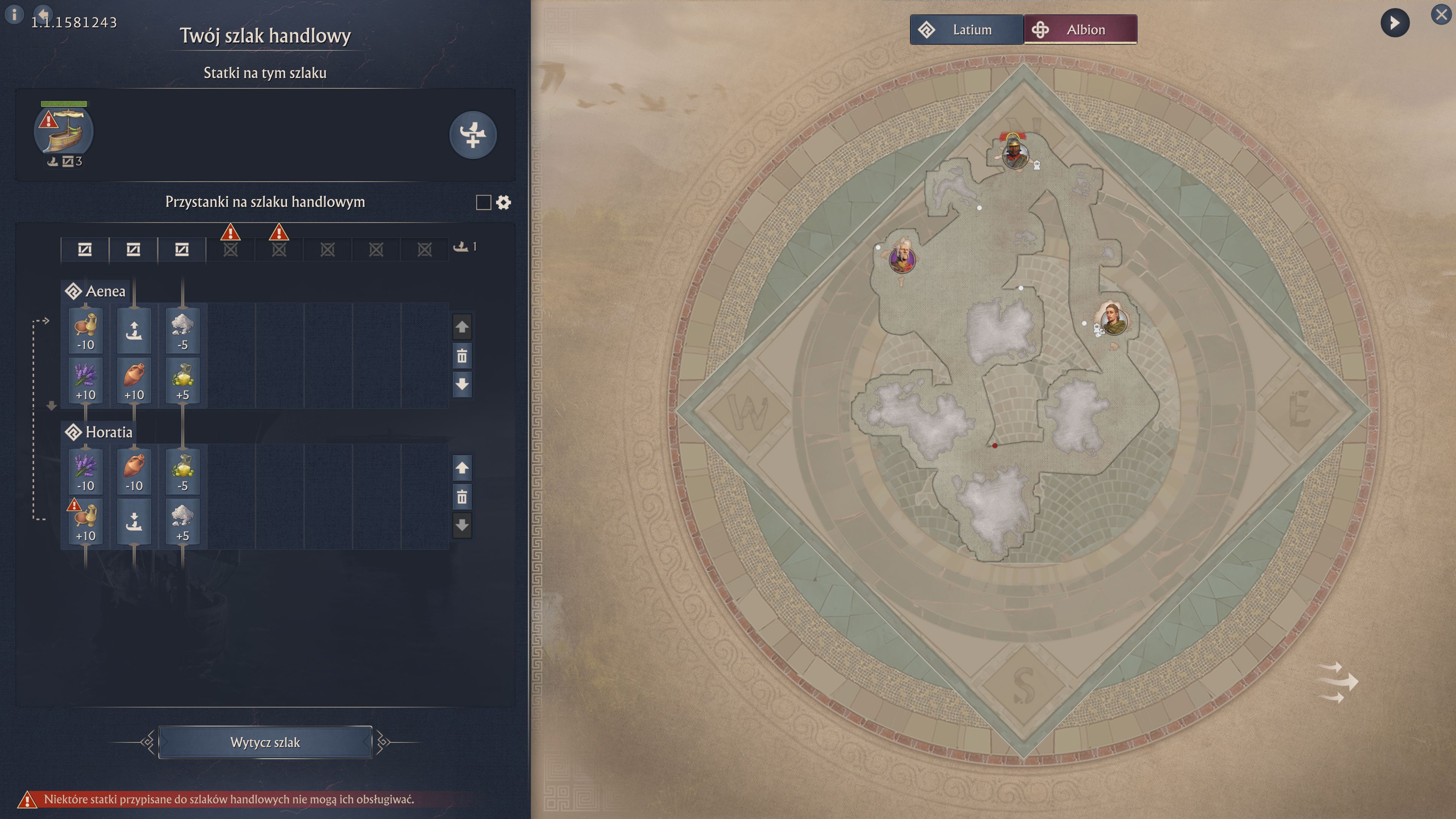 Pierwsza z nich czeka na graczy jeszcze przed ulokowaniem pierwszego portu handlowego, a jest nią wybór startowej lokacji. Rozpoczęcie historii w Lacjum proponowane jest dla osób chętnych na łagodniejszy start – z mniej agresywnymi piratami czy prostszym projektowaniem miast ze względu na uwarunkowania terenowe.