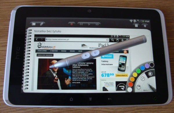 HTC Flyer, tablet, którego recenzja pojawiła się na łamach Tabletowo.pl kilka miesięcy temu, to urządzenie z najwyższej półki. Oferuje 7-calowy, pojemnościowy ekran dotykowy o rozdzielczości 1024 x 600 pikseli, jednordzeniowy procesor Qualcomm 1,5GHz, 1GB pamięci operacyjnej RAM, system operacyjny Google Android (z zapowiadaną możliwością aktualizacji do wersji 3.2) z interfejsem HTC Sense, czytnik kart pamięci microSD, aparat 5 Mpix, kamerę internetową 1.3 Mpix, Wi-Fi b/g/n, Bluetooth, GPS, port microUSB, akcelerometr oraz akumulator o pojemności 4000 mAh pozwalający na około 10 godzin pracy.