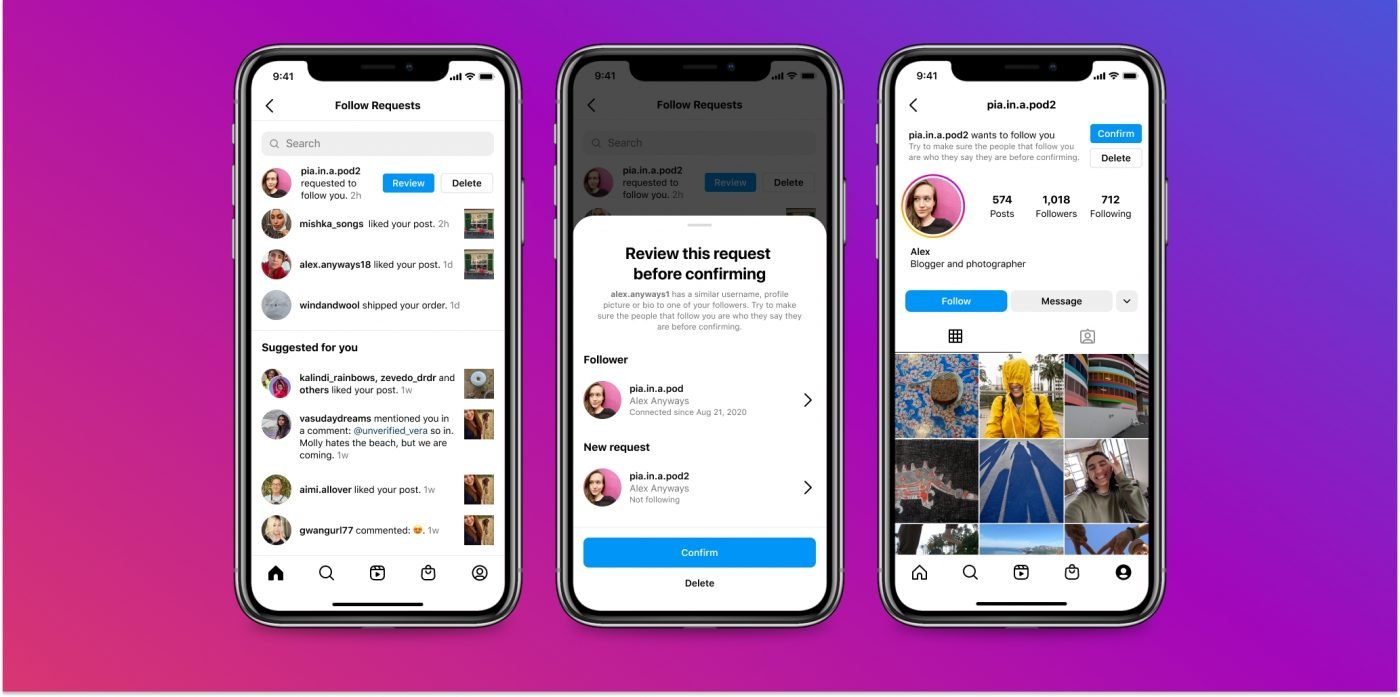 Po drugie firm zauważa, że nieuczciwi użytkownicy i hakerzy często nie od razu wykorzystują fałszywe konta w złośliwy sposób – przykładowo mogą w pierwszej fazie ataku tylko wysłać zaproszenie do znajomych i później przez dłuższy czas nic więcej nie robić. W związku z tym Instagram testuje funkcję wysyłania ostrzeżeń, jeśli konto, co do którego są podejrzenia, że może podszywać się pod kogoś, poprosi użytkownika o obserwowanie.