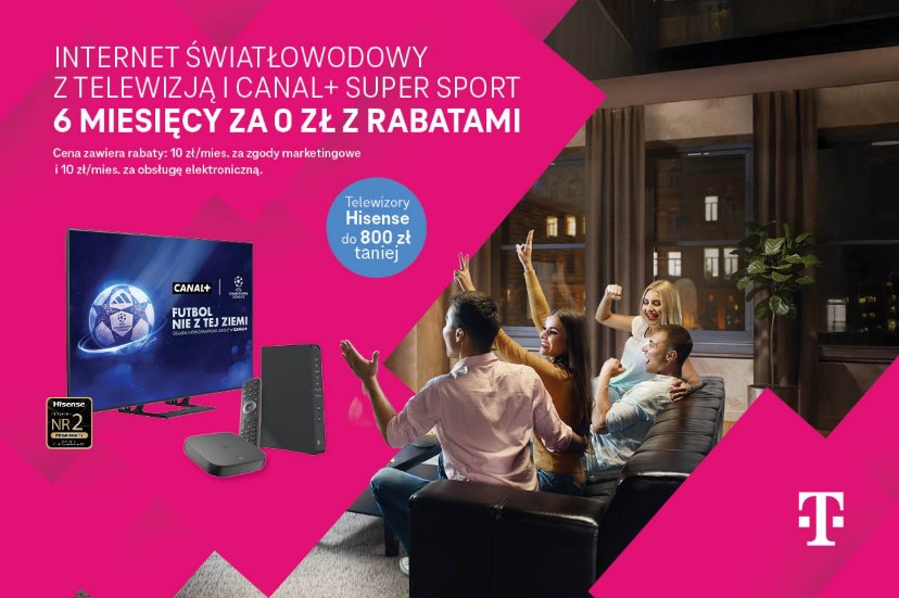 Promocja obowiązuje przy jednoczesnym zawarciu umowy na internet światłowodowy (do 300 Mb/s) wraz z pakietem Magenta TV M oraz aktywacją pakietu kanałów Canal+ Super Sport. Warto podkreślić, że umowa zawierana jest na 24 miesiące (wyjątkiem jest pakiet Canal+ Sport, z którego można zrezygnować po jednym pełnym okresie rozliczeniowym).