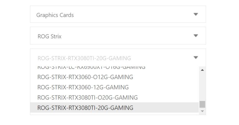 Z katalogu tajwańskiej firmy możemy dowiedzieć się, że trwają prace nad dwoma wariantami GPU, pierwszym ROG-STRIX-RTX3080TI-O20G-GAMING (z fabrycznym podkręceniem rdzenia) oraz drugim ROG-STRIX-RTX3080TI-20G-GAMING (z referencyjnym zegarem).