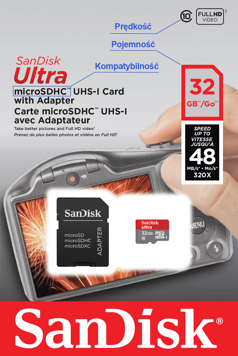 Na szczęście w większości urządzeń aktualnie króluje konkretny format o nazwie SD (Secure Digital), a dokładniej ich mniejsze siostry – microSD. Najczęściej na półkach znajdziemy te pochodzące od producentów takich jak: SanDisk, Samsung, Kingston, Toshiba czy Sony. Jednak poza logiem, na pudełku znajdziemy również kilka innych ważnych oznaczeń. Zanim przejdziemy do rozwiązywania ich znaczenia, warto zauważyć, że będą one miały takie samo znaczenie dla większych kart SD.