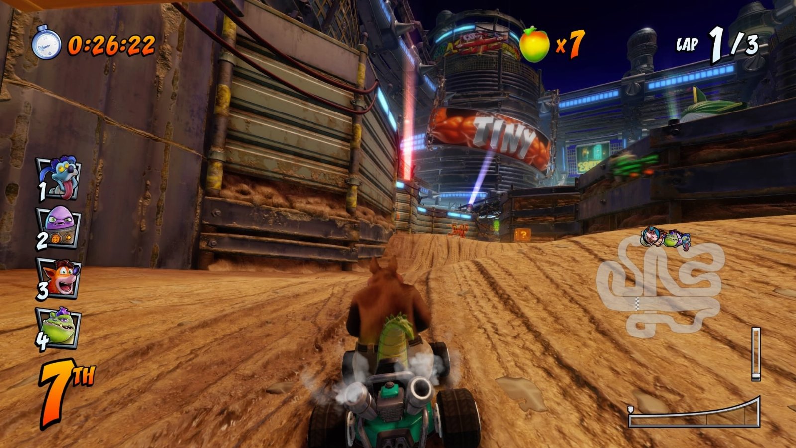 Kompletną skrajnością tego, co widzimy w Mario, jest Crash Team Racing Nitro-Fueled, który średnio nadaje się dla nowicjuszy i najmłodszych. Średni poziom trudności jest dla takich osób zbyt trudny a łatwy… zbyt łatwy, przez co trudno czerpać z tej gry przyjemność bez specjalnego, nazwijmy to „treningu”. Tego kart racera z pewnością docenią bardziej hardcorowi gracze, bo pomimo tego, że gra ma dość wysoki próg wejścia, to dzięki temu model jazdy pozwala graczowi na wiele więcej. Specyficzne „duszenie silnika” wymaga wprawy, którą trudno nabyć w ciągu kilku minut. Gra stawia również w mniejszym stopniu na power-upy od konkurentów, przez co bardziej trzeba tu polegać na swoich zdolnościach niż szczęściu. Więcej o systemie jazdy przeczytacie w mojej recenzji: