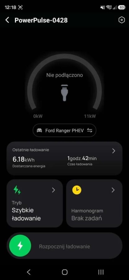 Największą siłą EcoFlow PowerPulse 2 jest tak naprawdę aplikacja, z poziomu której ustawimy dosłownie wszystko. Pierwsza kwestia to uruchamianie ładowania, które może odbywać się w trójnasób – z poziomu aplikacji, kartą RFID lub po prostu plug and play. Ostatnia opcja jest najprostsza i nie ma problemu, by ją wybrać niezależnie od samochodu, jaki będziemy ładować, bo ładowarka wspiera wszelkiego rodzaju pojazdy – zarówno ładowane jedno-, jak i trójfazowo. Dostępne są dwie wersje: 11 kW / 16 A lub 22 kW / 32 A – my mamy pierwszą z nich.
