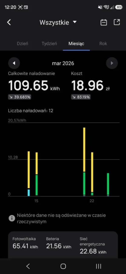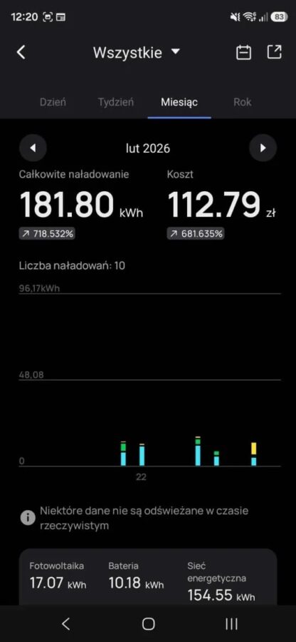 Robiliśmy to zimą, gdy nie mogliśmy liczyć na energię słoneczną, jak i teraz, gdy słońce wreszcie powoli się zadomawia. A ma to znaczenie, bo z poziomu aplikacji możemy zdecydować z jakiego źródła ma pochodzić energia, którą ładujemy samochód – z sieci, banku energii PowerOcean czy prosto ze słońca. Możemy też wykorzystywać wszelkie dostępne źródła jednocześnie.