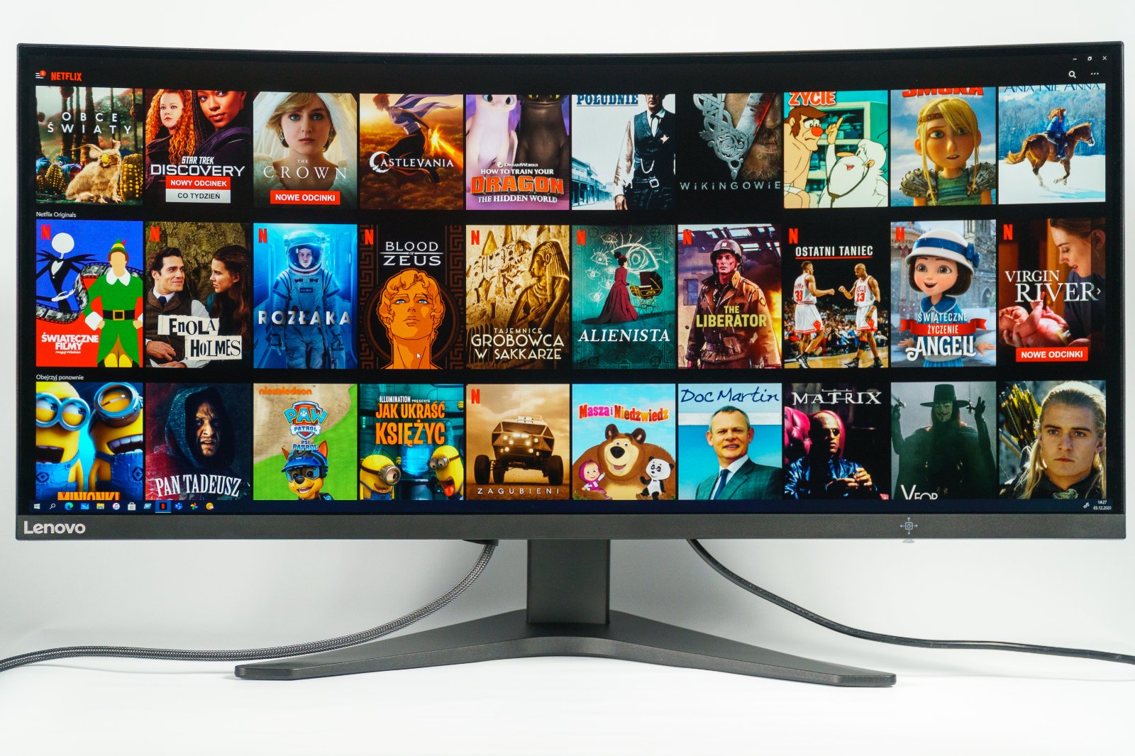 Przede wszystkim, dopóki nie podłączyłem Legiona, nie zdawałem sobie sprawy, jak niewiele filmów w popularnych serwisach VoD korzysta z kinowych proporcji 21:9 – najczęściej jest to jednak 16:9, a zatem po bokach pozostają szerokie czarne pasy. Po drugie – i to poważniejszy problem – część filmów 21:9 jest wyświetlana w letterboxie, czyli jako 16:9 z dodanymi na sztywno czarnymi pasami na górze i na dole – ten typ materiałów na Legionie wypadał fatalnie, gdyż do wyświetlania użytecznego obrazu używany był jedynie niewielki, centralny obszar monitora. To oczywiście nie wina G34W-10, lecz dostawców treści, ale nie ma to znaczenia dla marnego odbioru takiego filmu.