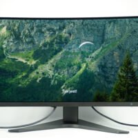panoramiczny zakrzywiony ekran gwarantuje świetną imersję w grach i możliwość pracy z dwoma stronami internetowymi naraz