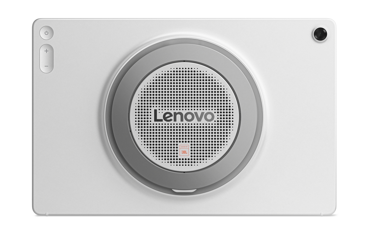 Uwagę zwraca przede wszystkim ogromna maskownica głośnika, na której umieszczono napis Lenovo i logo JBL. Zapowiada to, że w trakcie projektowania urządzenia jakość dźwięku była jednym z priorytetów. Interesująco wygląda też podstawka w kształcie pierścienia, która umożliwia ustawienie tabletu w orientacji poziomej lub pionowej.