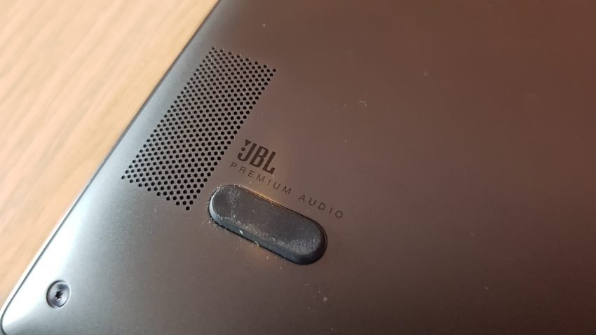 Z tyłu odnajdziecie dwie, rozdzielne względem siebie komory, odpowiadające za chłodzenie urządzenia, mamy też oznakowanie handlowe producenta i logo Windows. Są też głośniki, które naprawdę mają solidnego kopa. Napis, który możecie zobaczyć na poniższym zdjęciu sugeruje, że powstały one we współpracy z JBL. Mógłbym je chwalić dość długo, nie znajdując przy tym zbyt wielu wad tego modułu. Owszem, ktoś może ponarzekać na to, że nie zostały one wyniesione na front urządzenia, ale zapewniam Was, z jakości brzmienia będziecie więcej niż zadowoleni. Yoga 730 gra naprawdę świetnie.