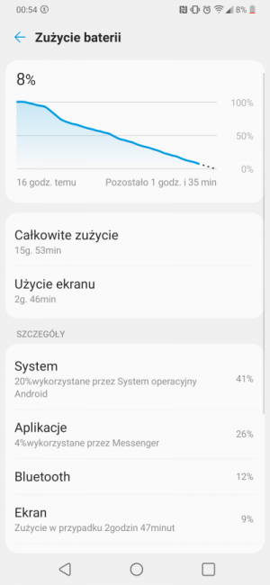 Na zagranicznych portalach spotkałam się z całkiem pozytywnymi opiniami na temat czasu pracy LG G8X ThinQ. Niestety, nie mogę tego potwierdzić, opierając się na swoich doświadczeniach. Smartfon, owszem, wytrzymywał średnio dzień działania, ale osiągany czas na włączonym ekranie (SoT) wcale nie zwala z nóg – to średnio 4, w porywach do 5 godzin, w dodatku niezależnie od tego, czy korzystałam z WiFi czy LTE.