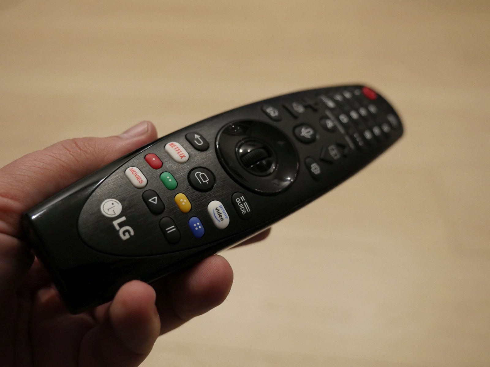 Nie zapominajmy również o pilocie, w końcu to też istotny element całości, chociaż tutaj nie ma jakiś większych zmian. Pilot/kontroler LG od kilku lat wygląda praktycznie tak samo, jak w poprzednich modelach. W nim również zastosowano akcelerometr, który umożliwia kontrolę kursora na ekranie poprzez ruchy ręką – jest to genialna funkcja, którą niezwykle cenię w produktach LG oraz, co istotne, ma wbudowany mikrofon.