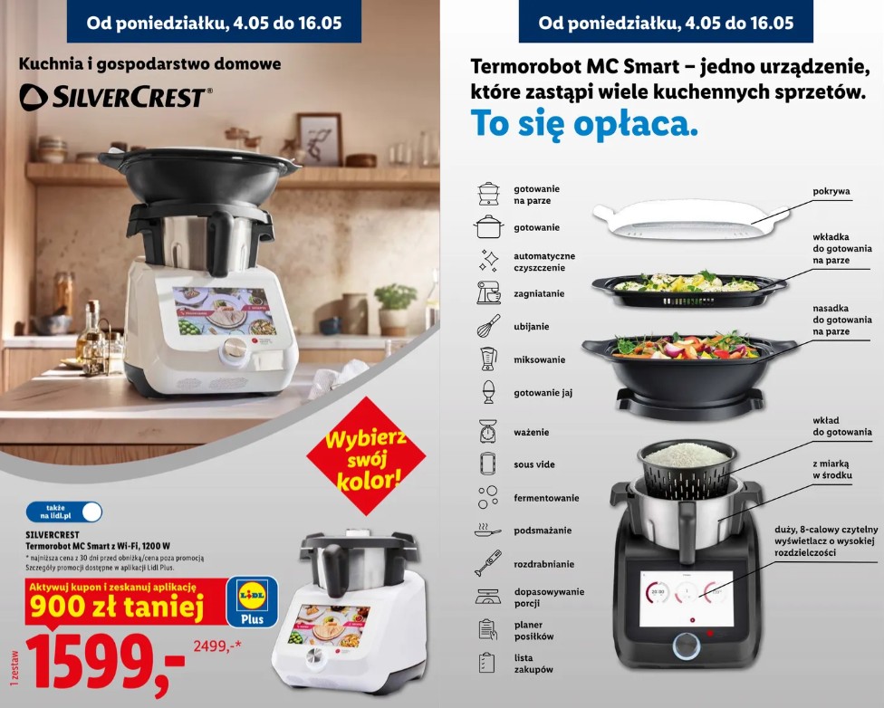 Aby skorzystać z większości promocji koniecznie będzie aktywowanie właściwego kuponu w aplikacji Lidl Plus. Warto też przypomnieć, że jeszcze do jutra (29 kwietnia 2026 roku) w rekordowo niskiej cenie możecie kupić kompaktową wersję Lidlomixa – MC Compact.