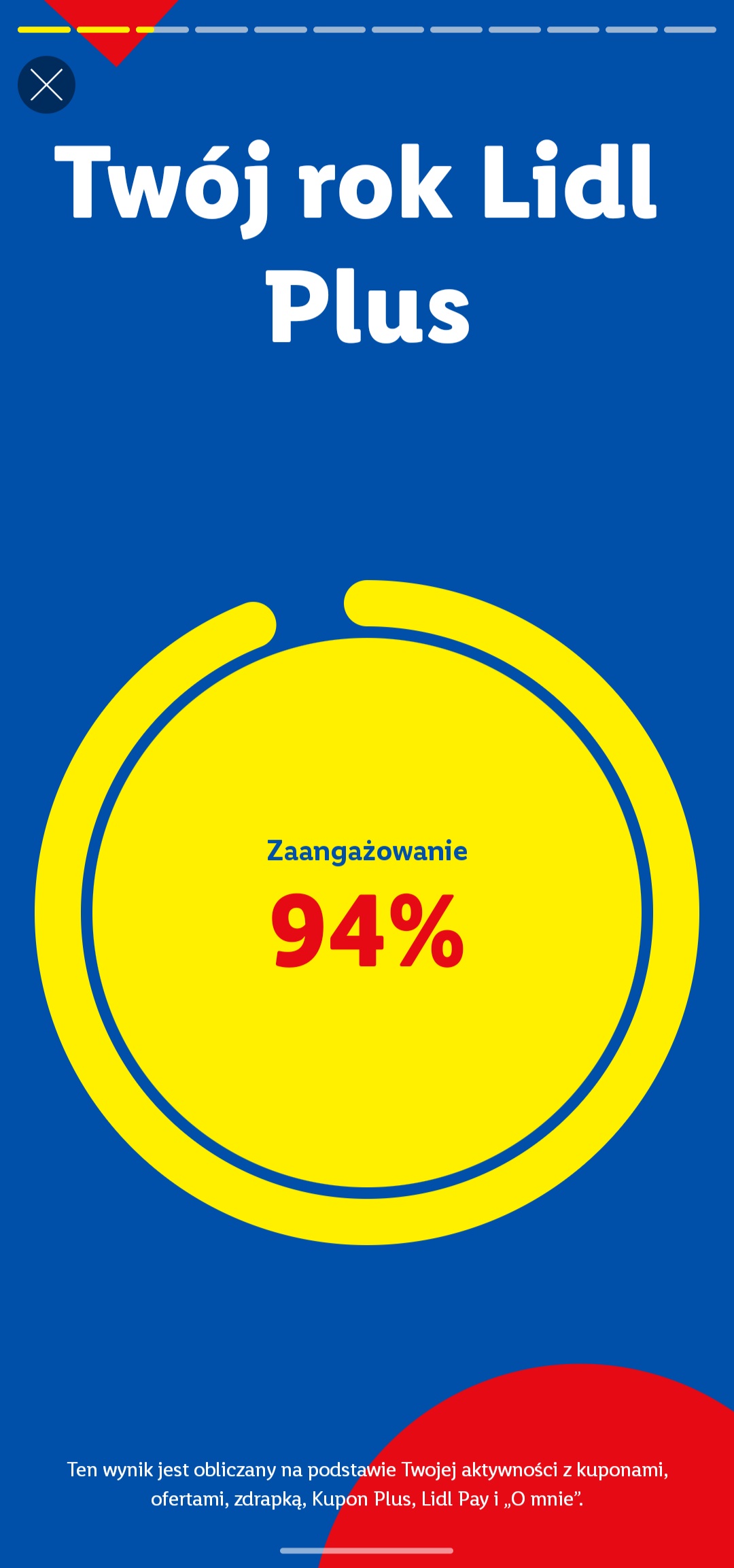 Niemiecka sieć handlowa przygotowała dla użytkowników aplikacji podsumowanie zakupów zrobionych w 2025 roku. Stworzono je w oparciu o dane zebrane w okresie od 1 stycznia do 13 grudnia 2025 roku. Zaczęło się całkiem nieźle – dowiedziałam się, że moje Zaangażowanie wyniosło 94%. Jak można przeczytać w aplikacji – wskaźnik ten szacowany jest w oparciu o aktywność z kuponami i ofertami.