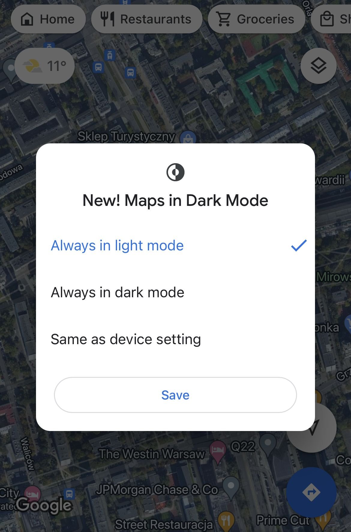 Jak aktywować tryb ciemny na Mapach Google na iOS?