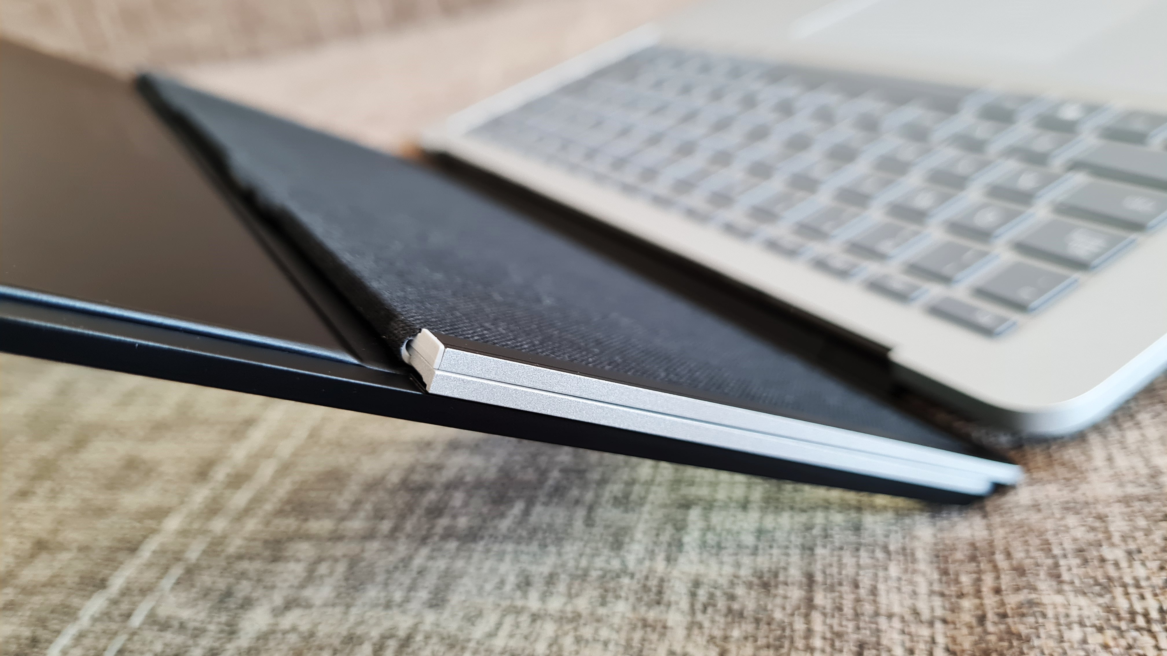 Sam mechanizm zawiasu Dynamic Woven Hinge sprawia wrażenie dopracowanego i trwałego. Trudno powiedzieć, ile złozeń/rozłożeń wytrzyma, ale przyglądając się mu bliżej – nie za bardzo jest tutaj co się psuć. Zresztą, Microsoft zawsze dbał o ruchome elementy w swoich urządzeniach. Jako użytkownik kilku pokoleń serfesów nigdy nie narzekałem na ten aspekt sprzętowy.