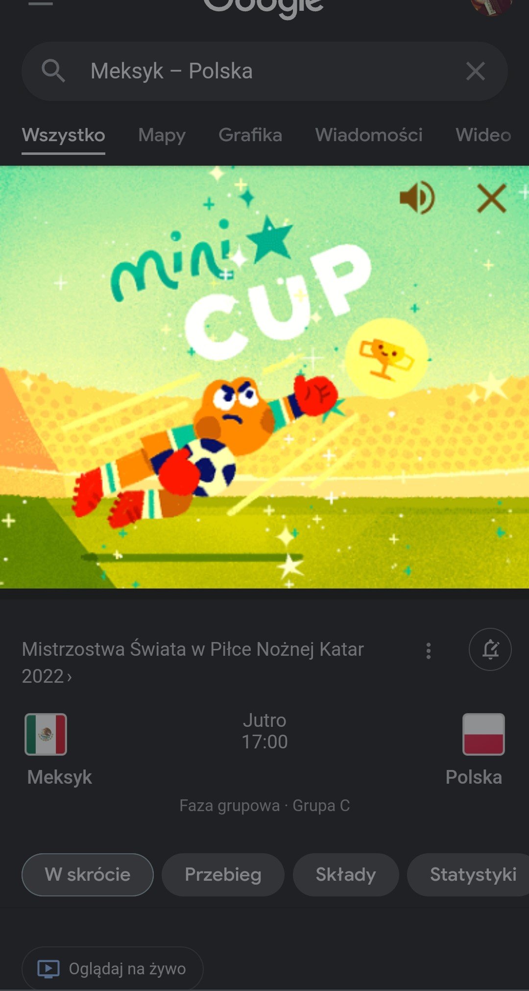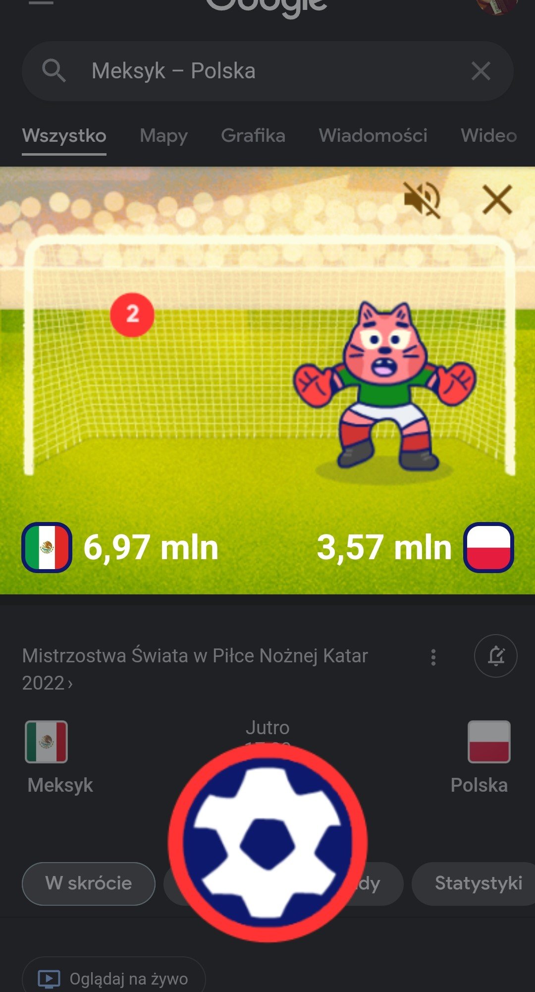 Żeby uruchomić grę Mini Cup, wystarczy wpisać w wyszukiwarce na swoim smartfonie hasło związane z tegorocznym Mundialem. Może to być na przykład: mundial 2022, mundial, mistrzostwa świata Katar, Polska – Meksyk, Anglia – Iran itd. Po wyszukaniu jednego z tych lub podobnych haseł w prawym dolnym rogu ekranu pojawi się niebieski przycisk z piłką. Po jego dotknięciu pojawi się menu główne gry, w którym możemy zagrać w jeden z meczy i wybrać reprezentację, dla której chcemy zbierać punkty. Następnie można już cieszyć się rozrywką.