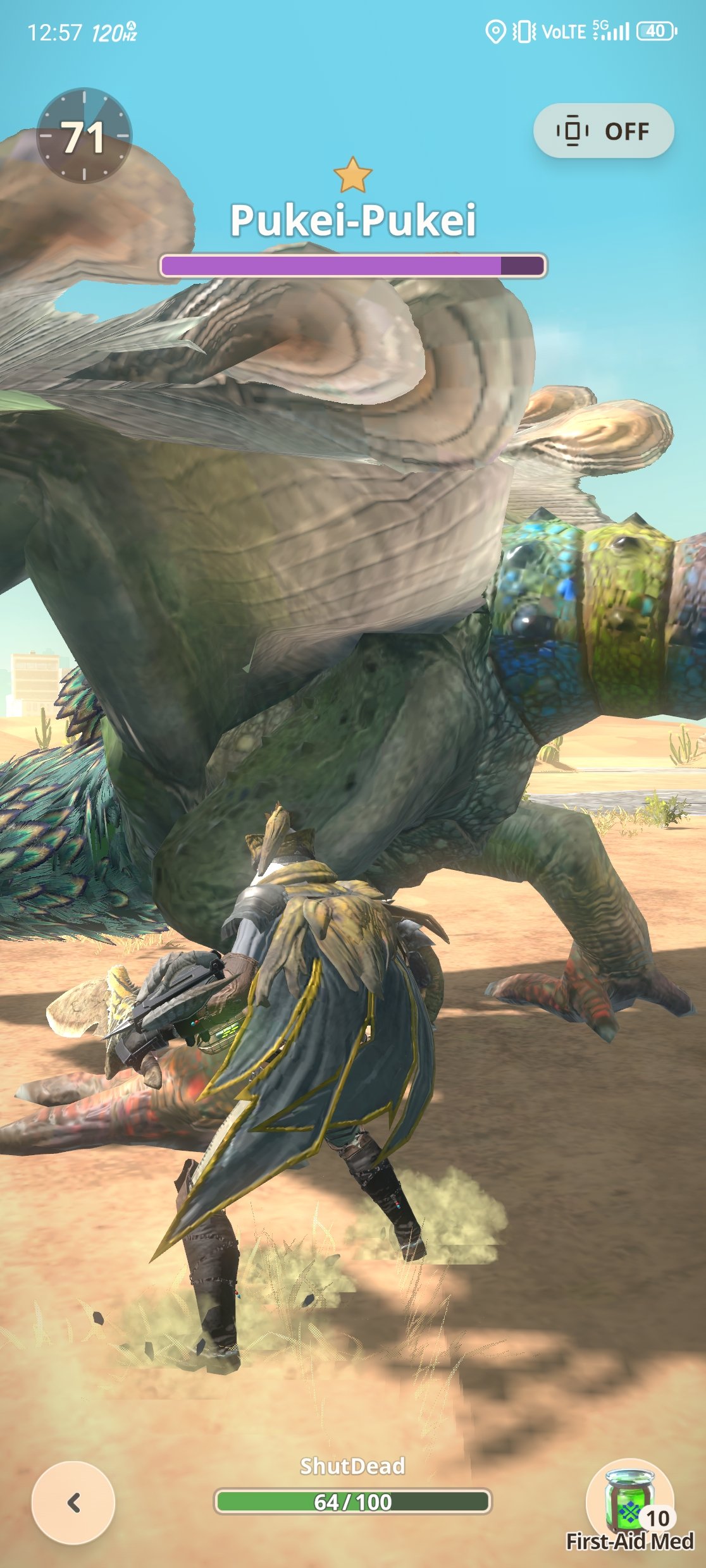 Grając w Monster Hunter Now ani razu nie natrafiłem na potwora, który byłby w stanie mnie pokonać. Ba, żaden nie zbił mi więcej niż 50 punktów życia. Wynika to z głównie faktu, że potyczki są dość proste i schematyczne. Jeżeli trafisz na większego rywala (ci są posegregowani na „small” oraz „large”), to wystarczy turlając się unikać jego ataków, a następnie zasypać gradem ciosów i powtarzać schemat dopóki nie padnie na glebę.